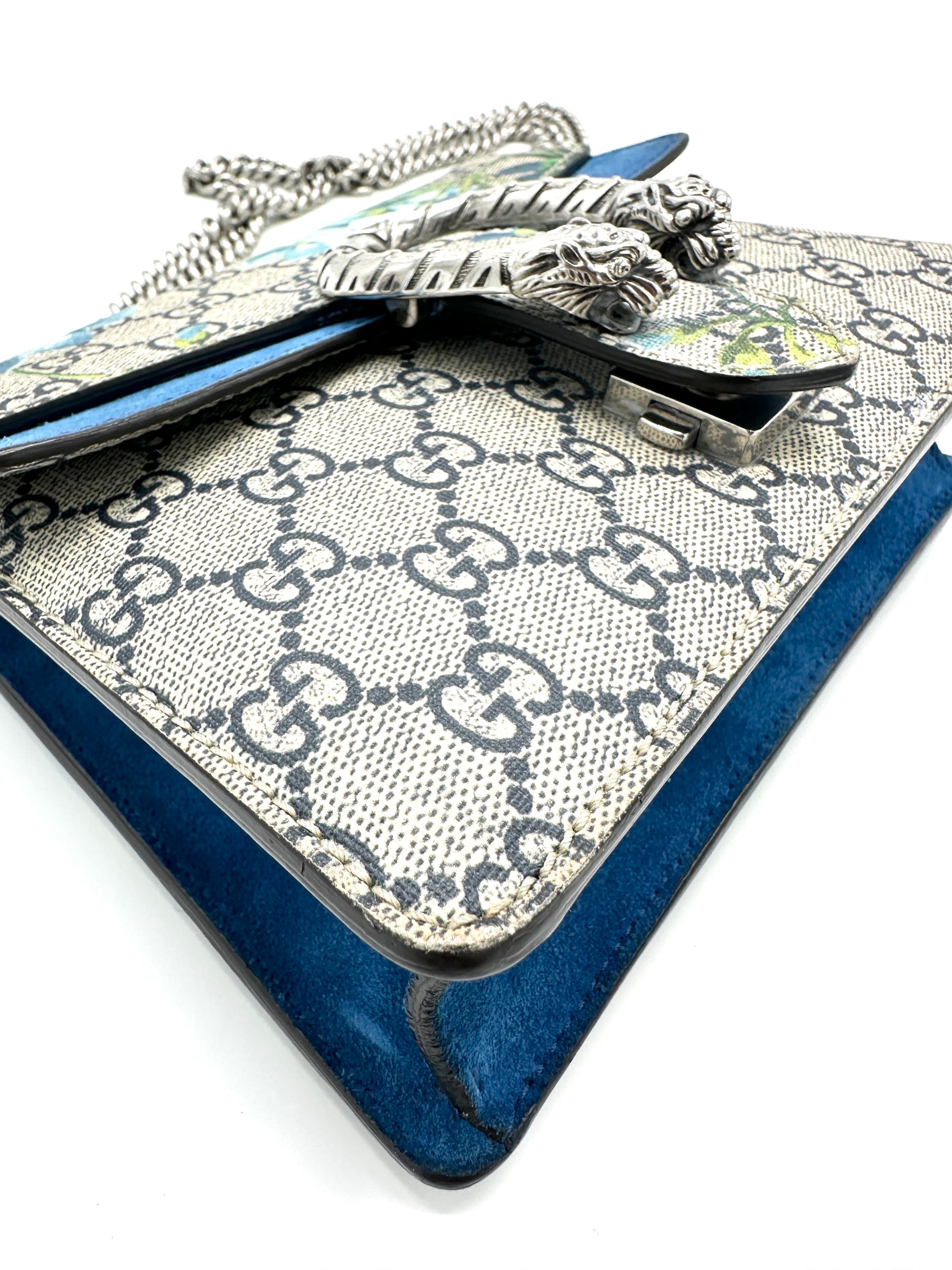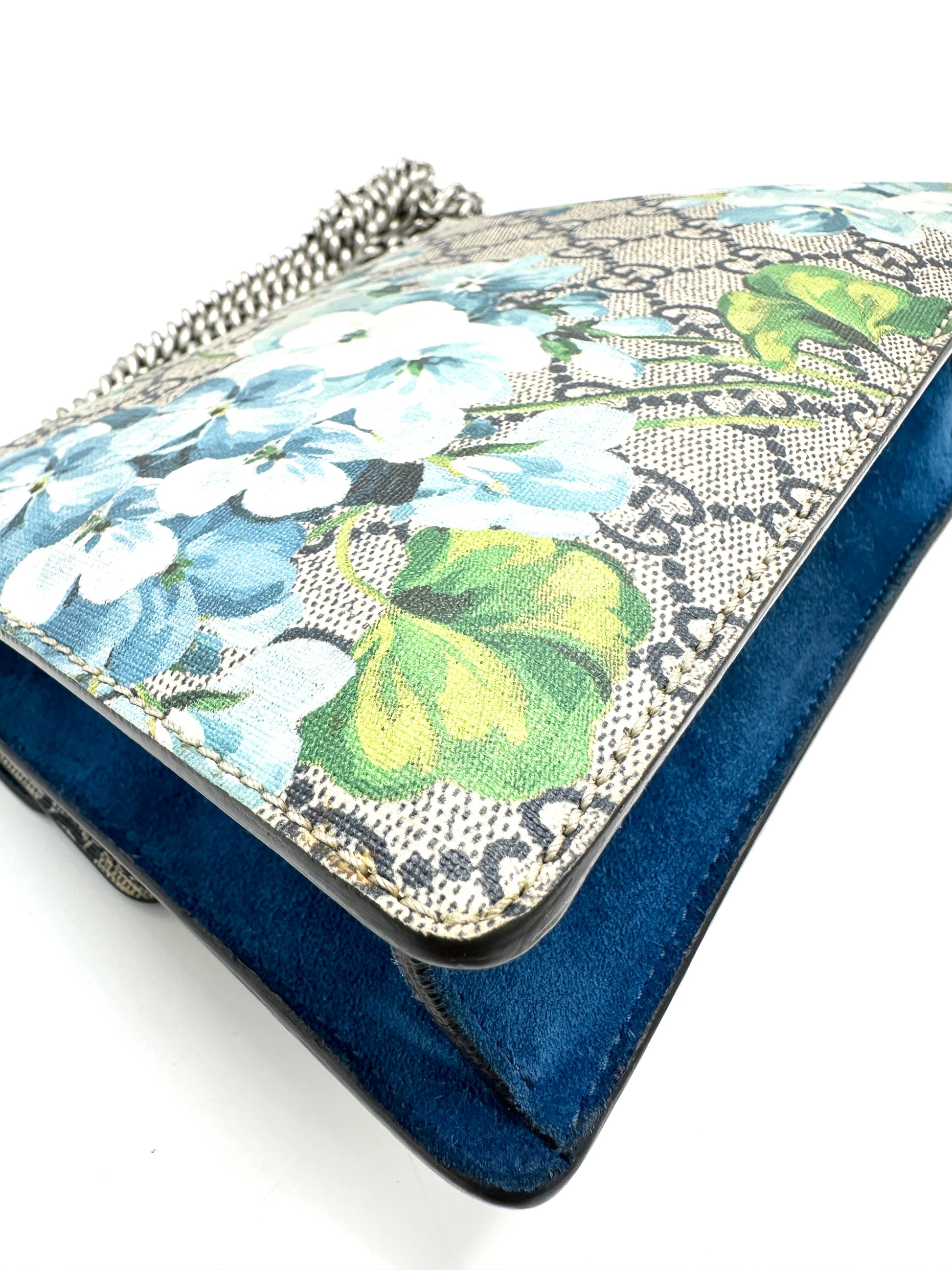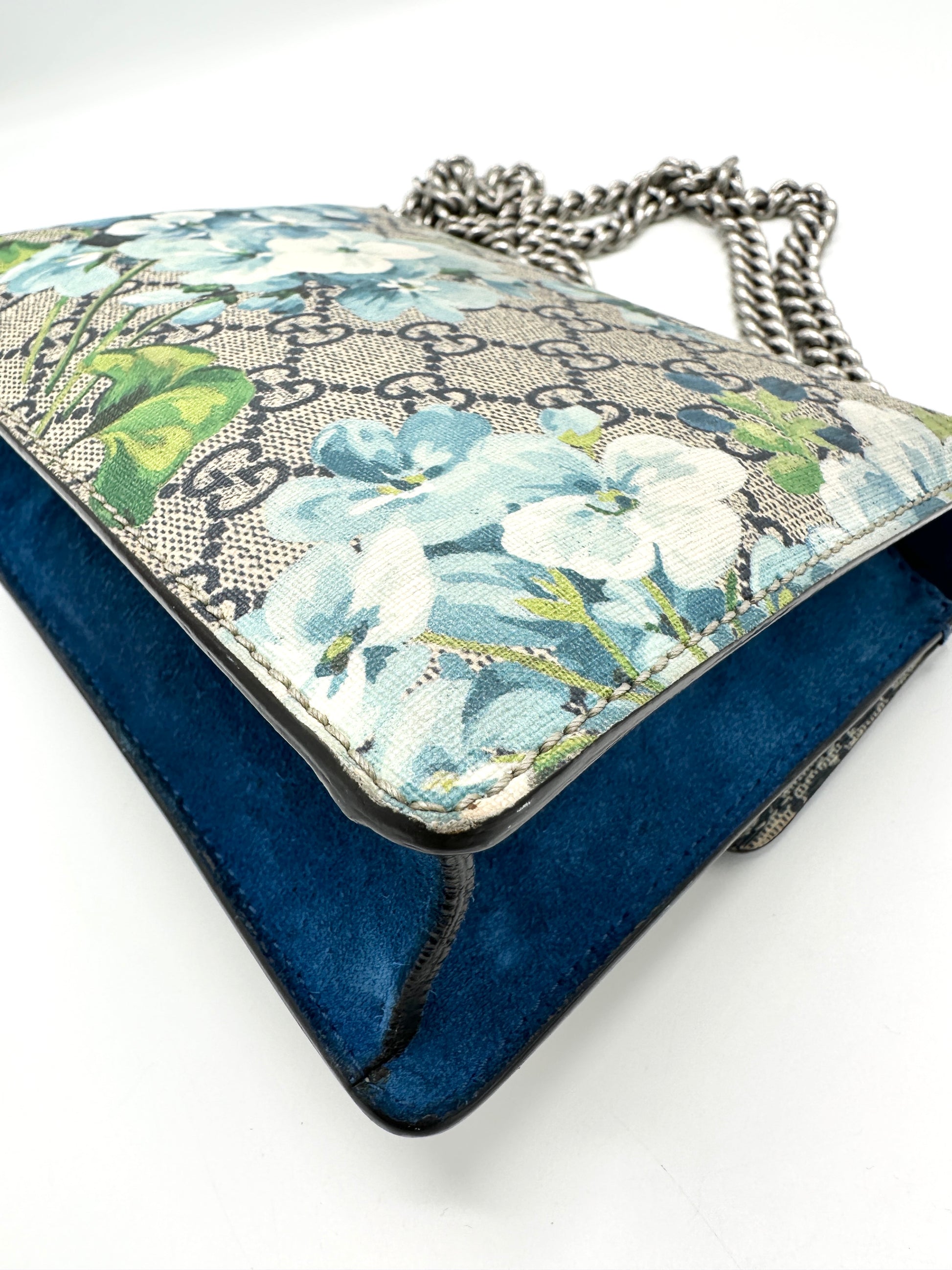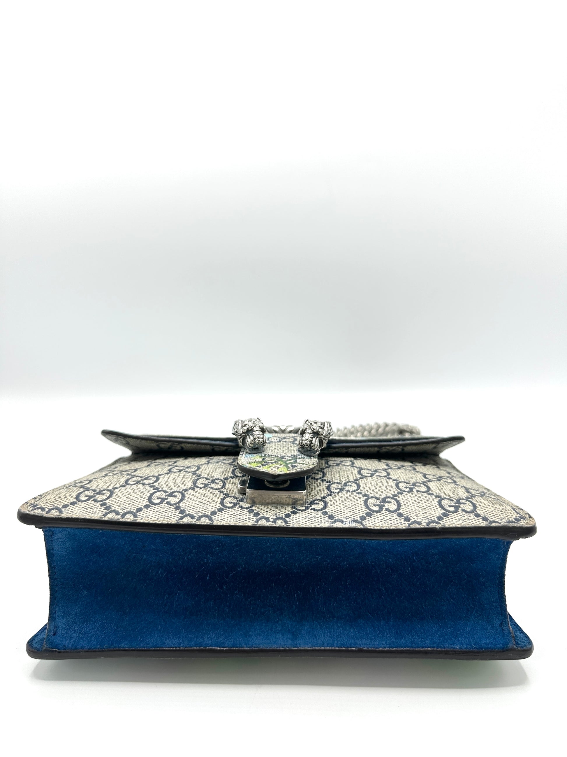 100% Authentic Gucci Cobalt Blue Blooms Suede Dionysus Square Flap