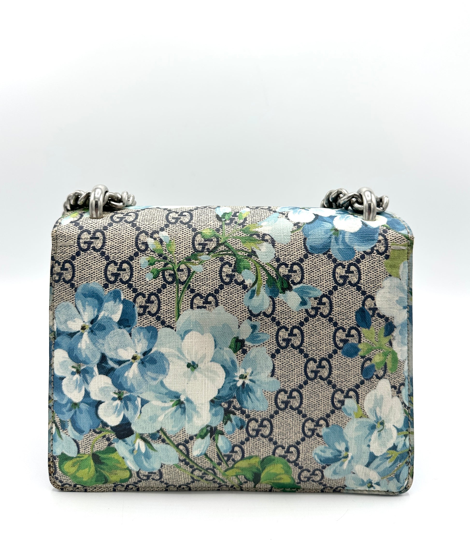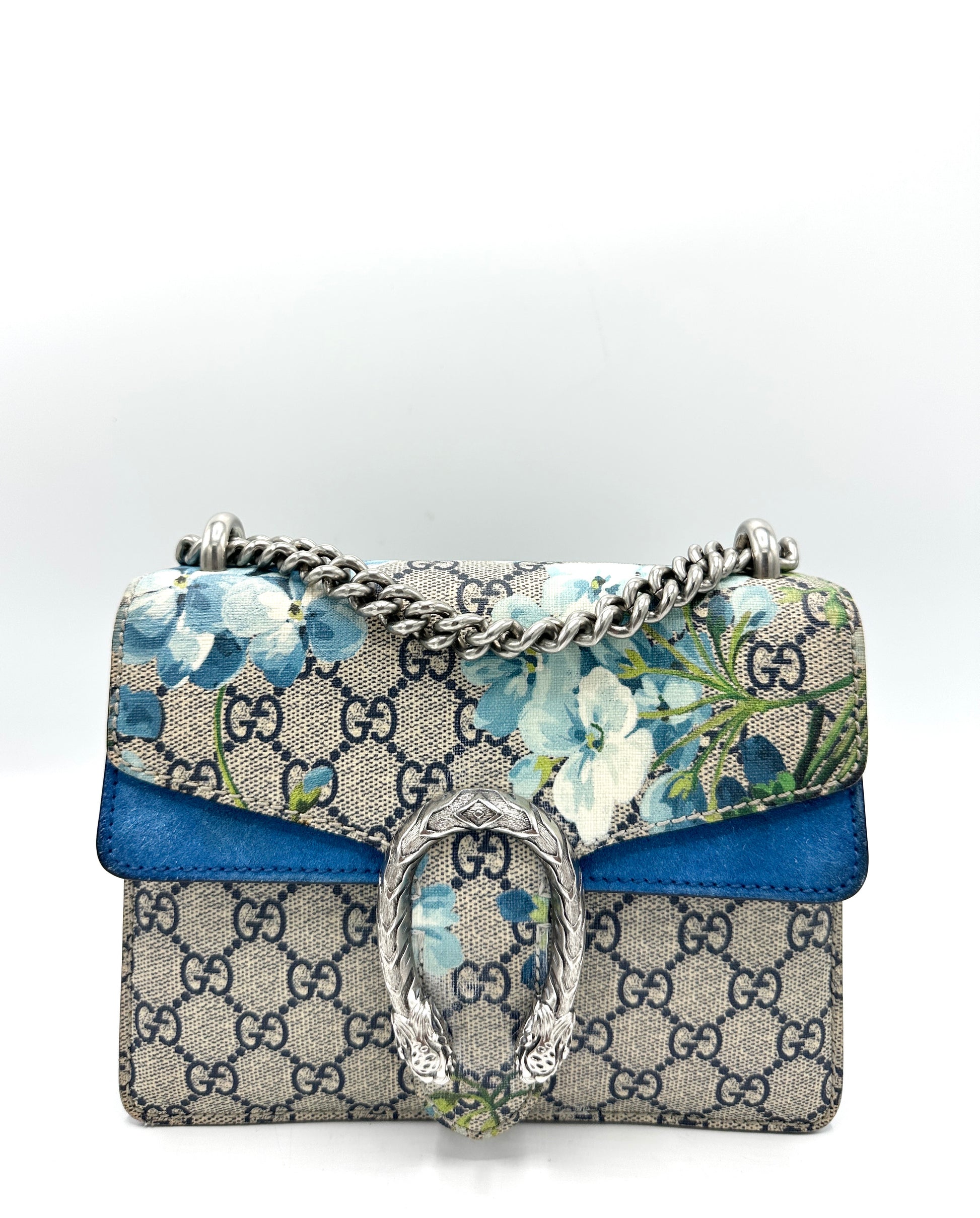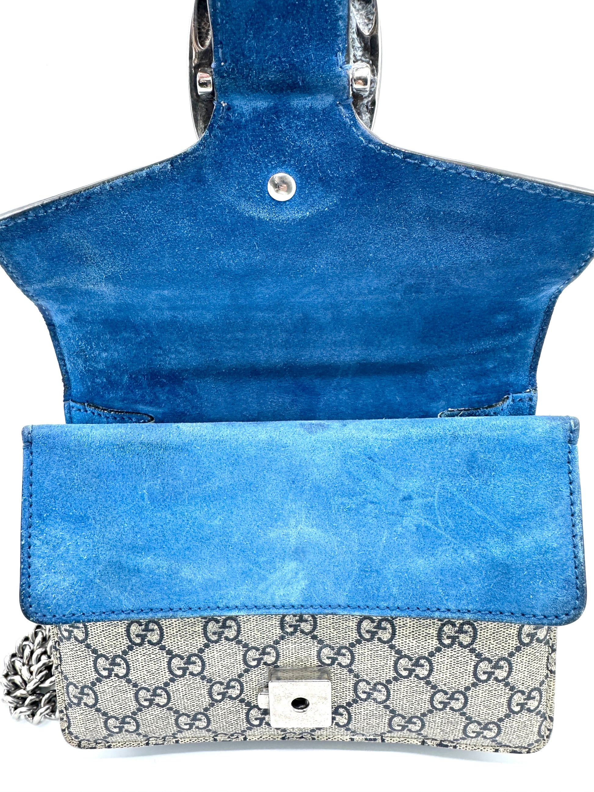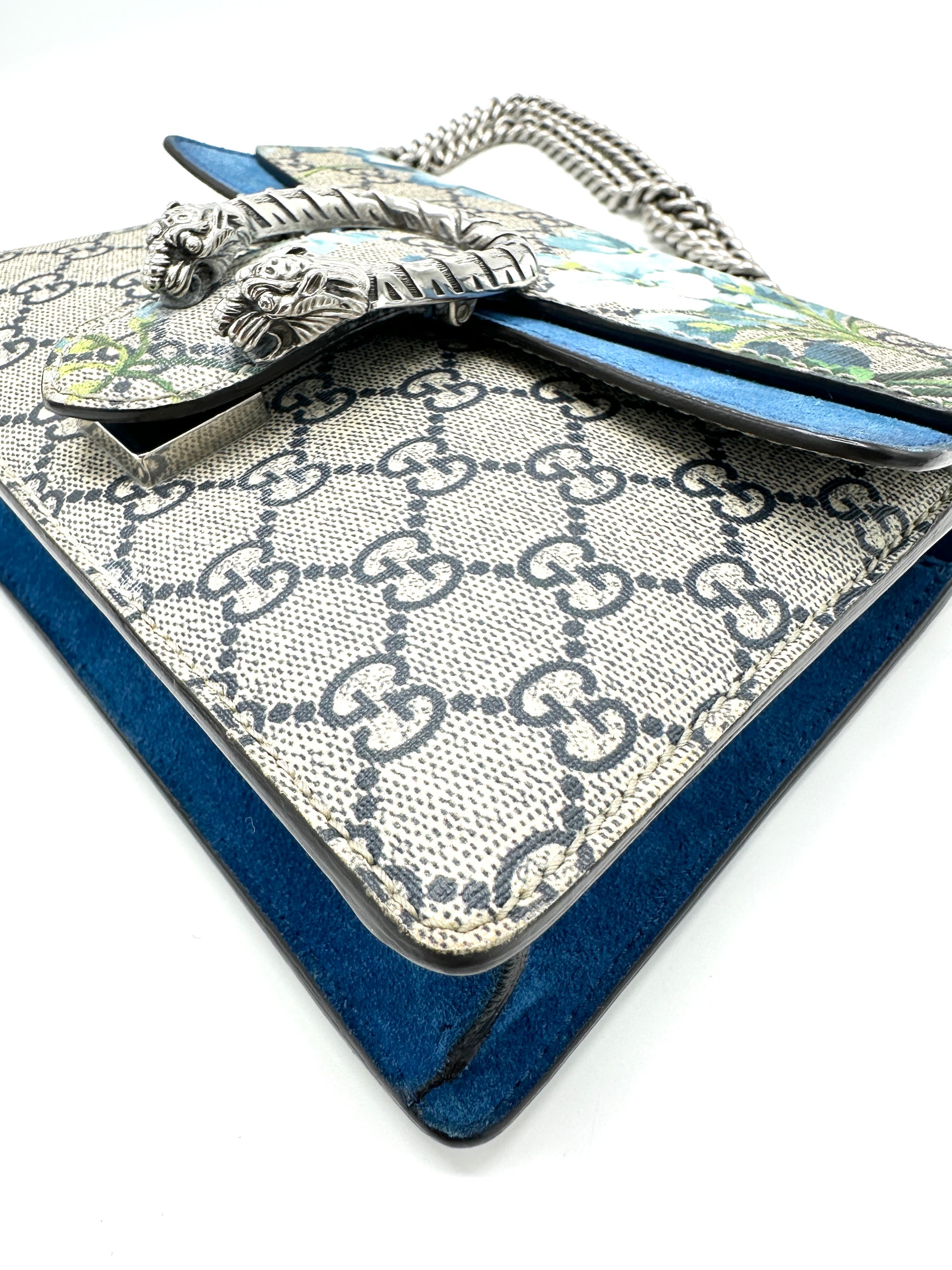 100% Authentic Gucci Cobalt Blue Blooms Suede Dionysus Square Flap
