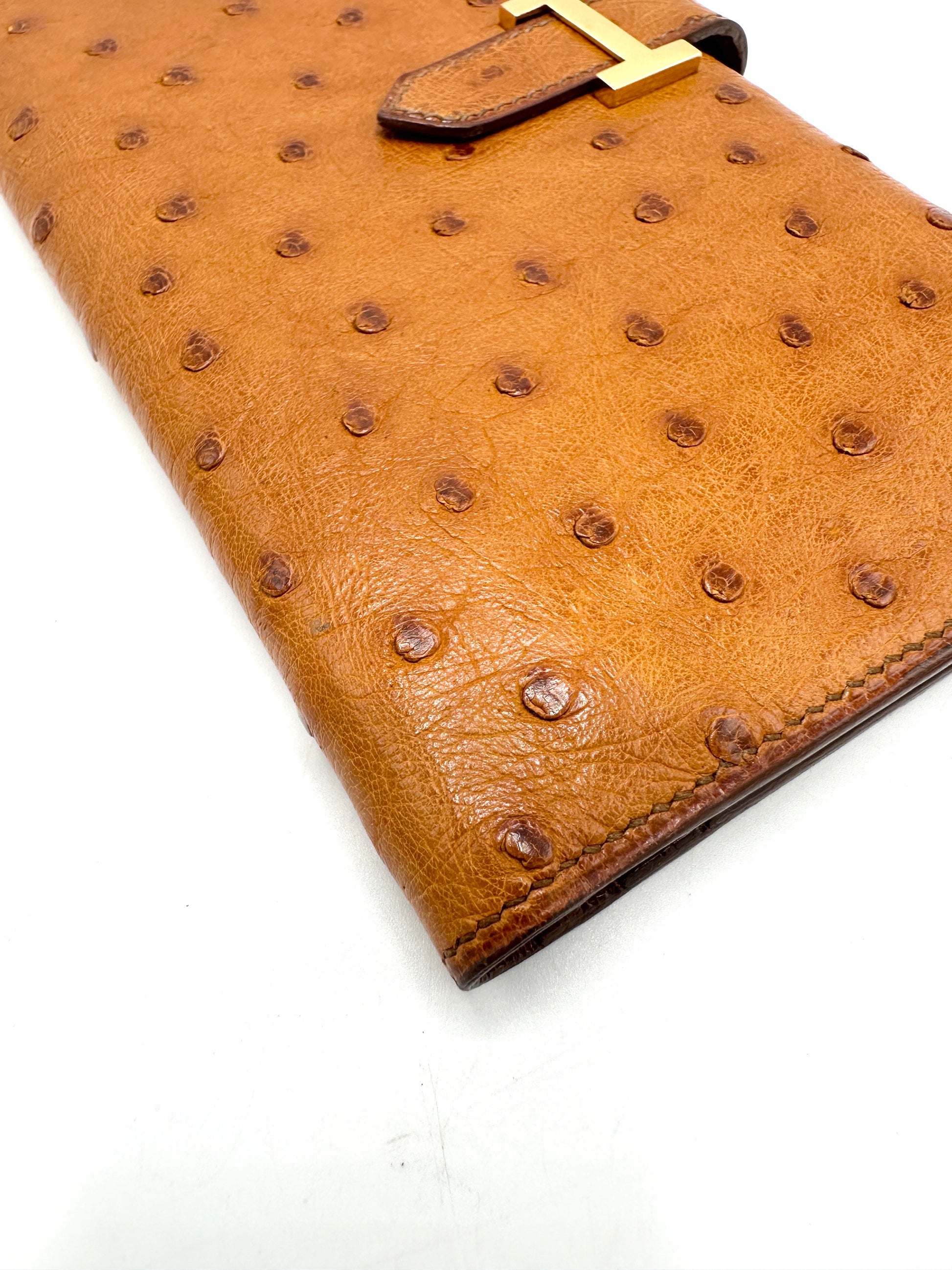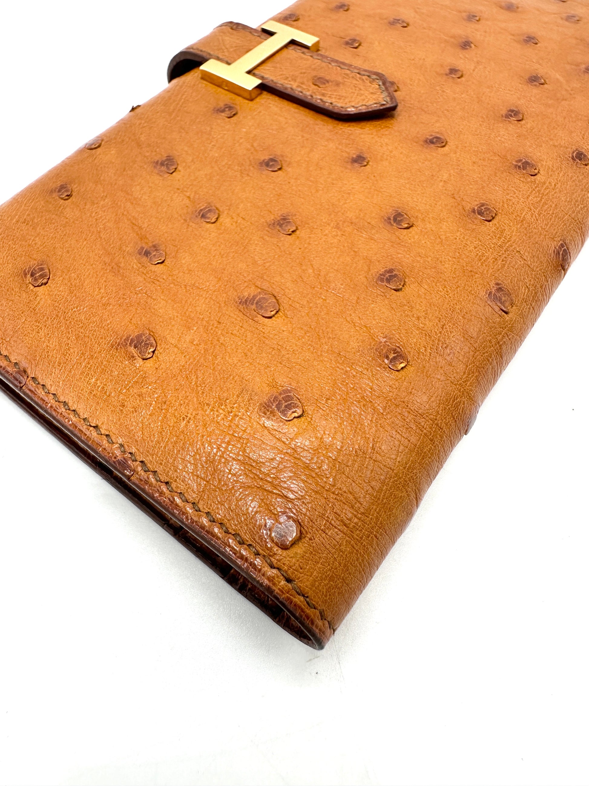 100% Authentic Hermes Gold Ostrich GHW Bearn Wallet