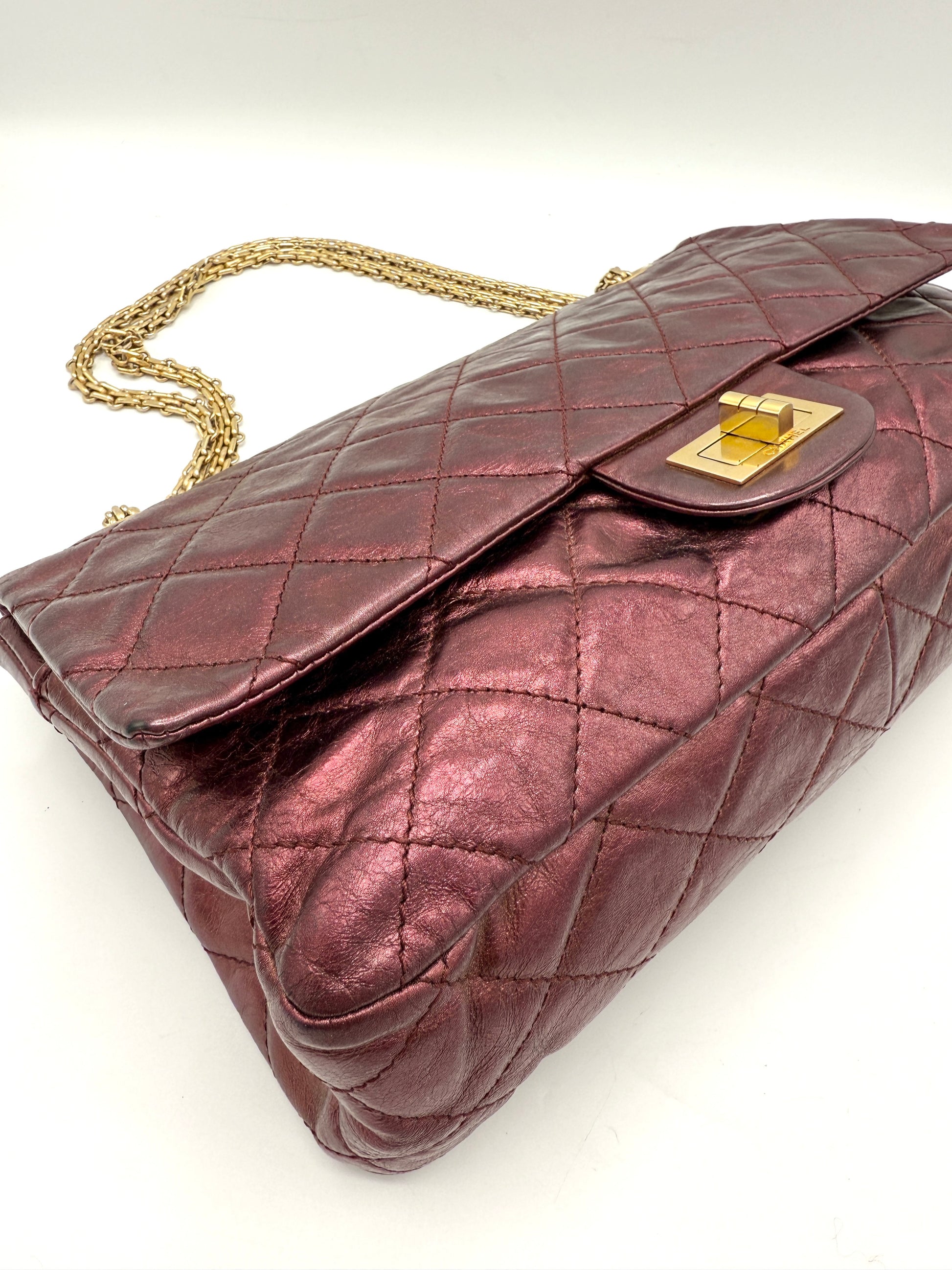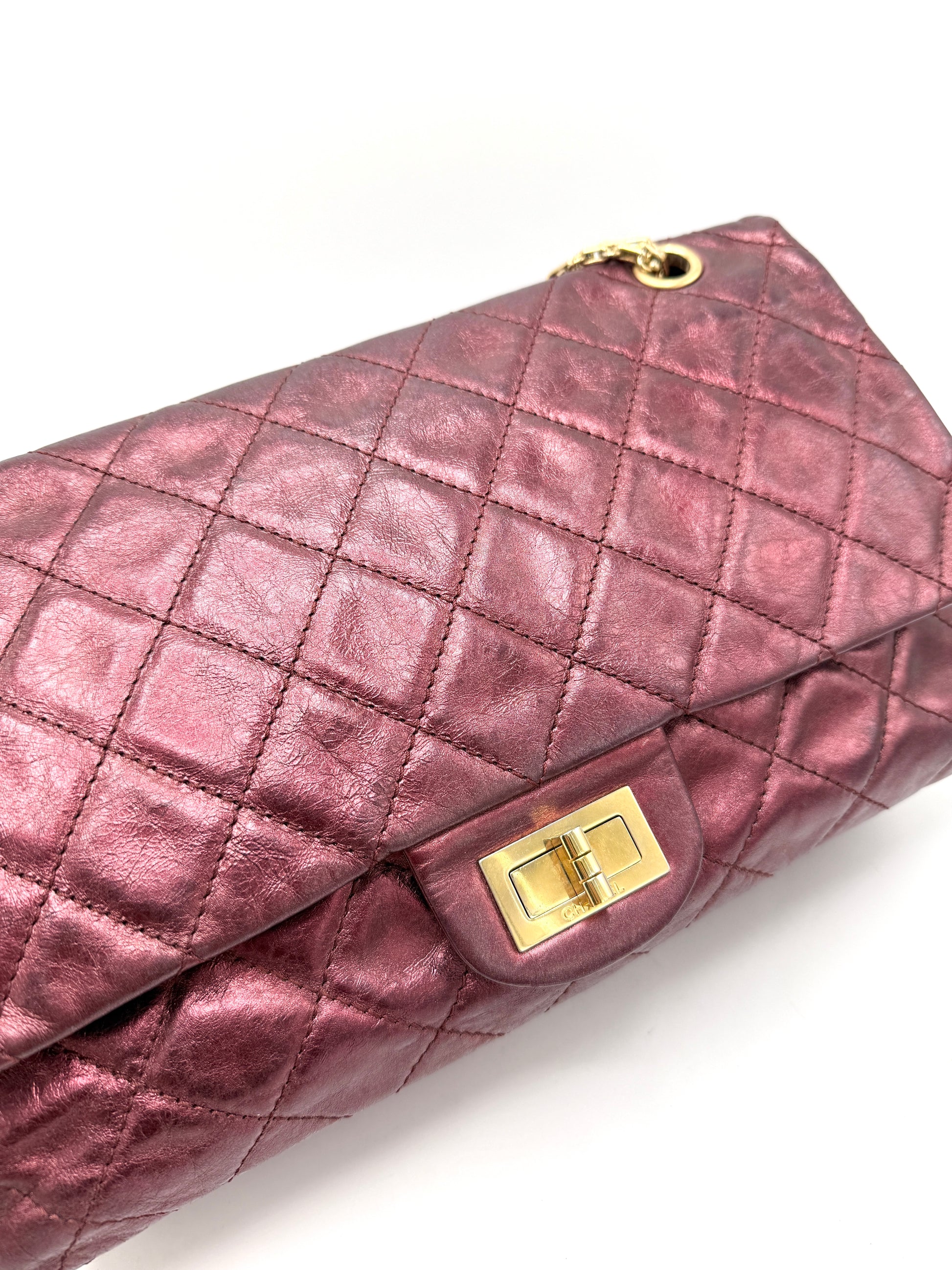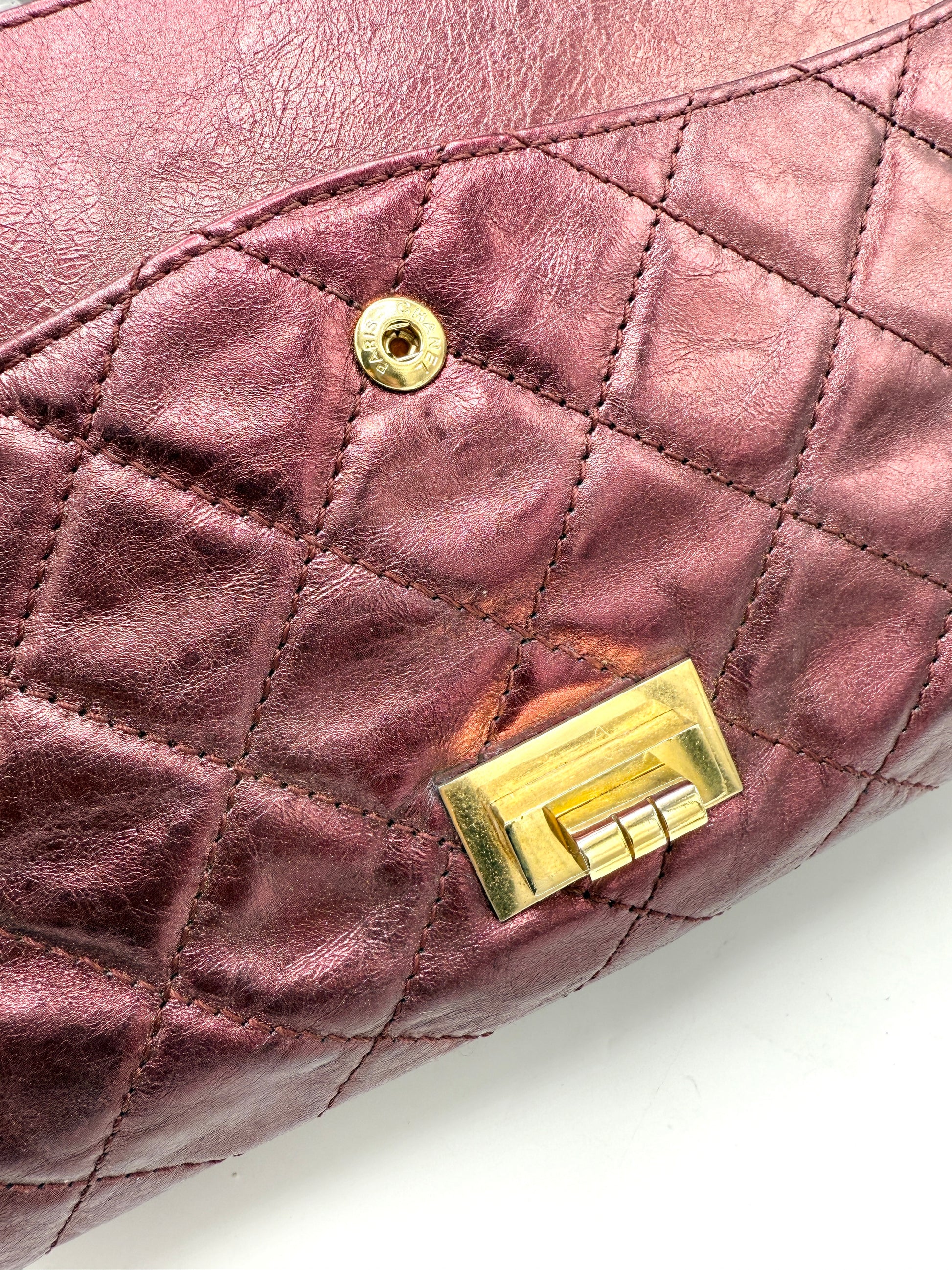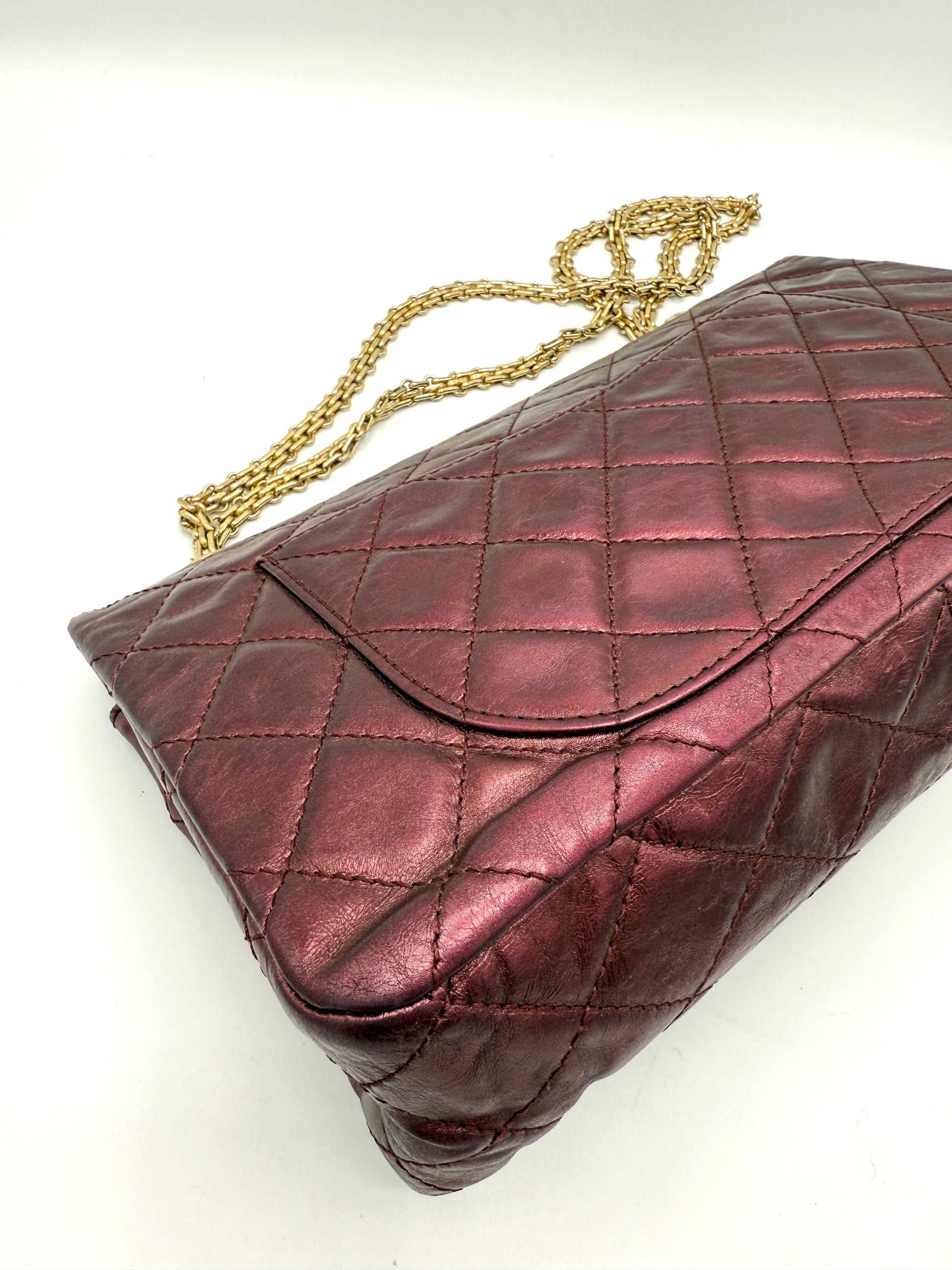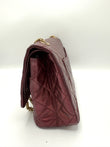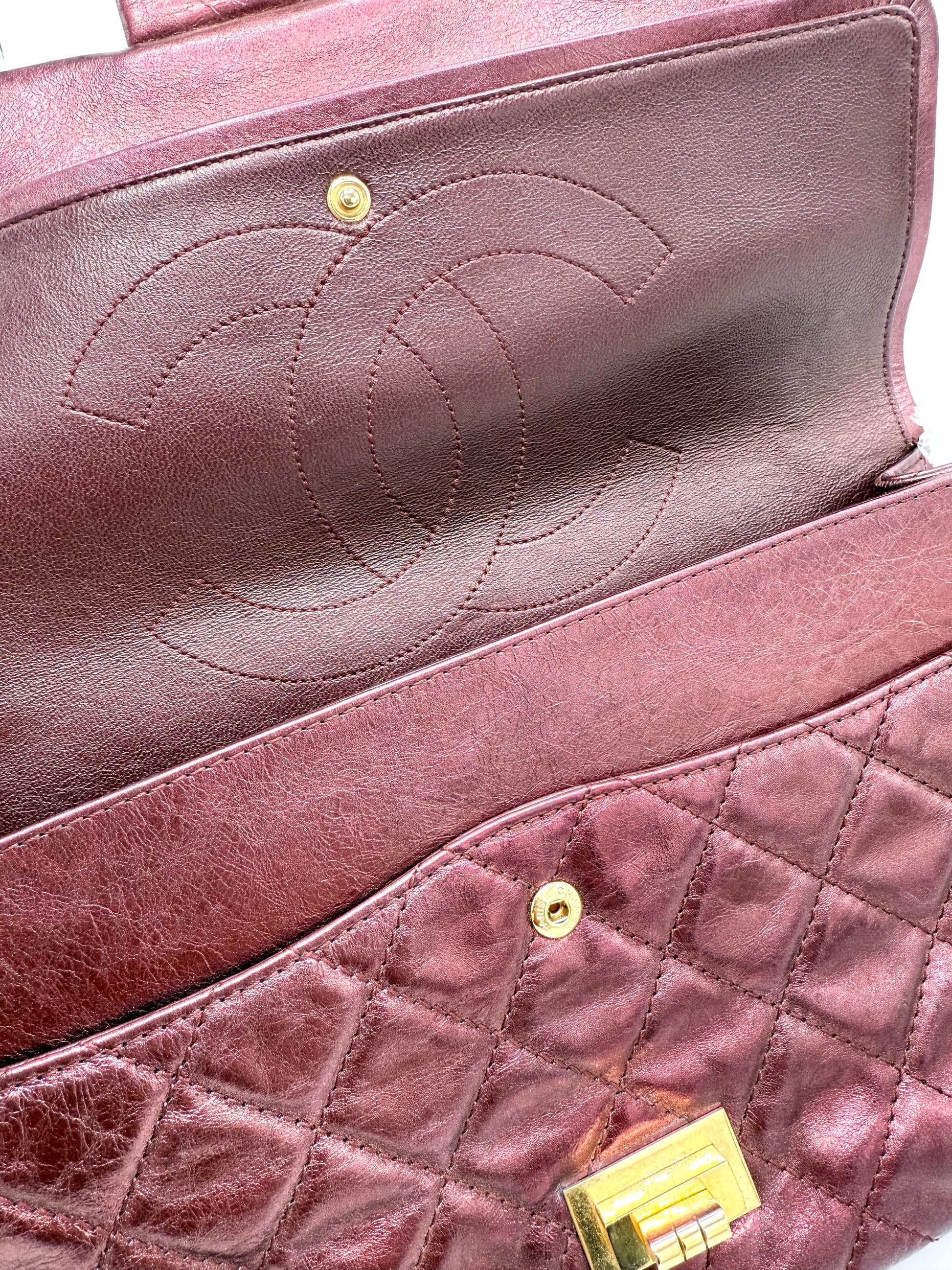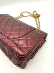 100% Authentic Chanel Metallic Red Distressed Leather GHW Reissue Double Flap