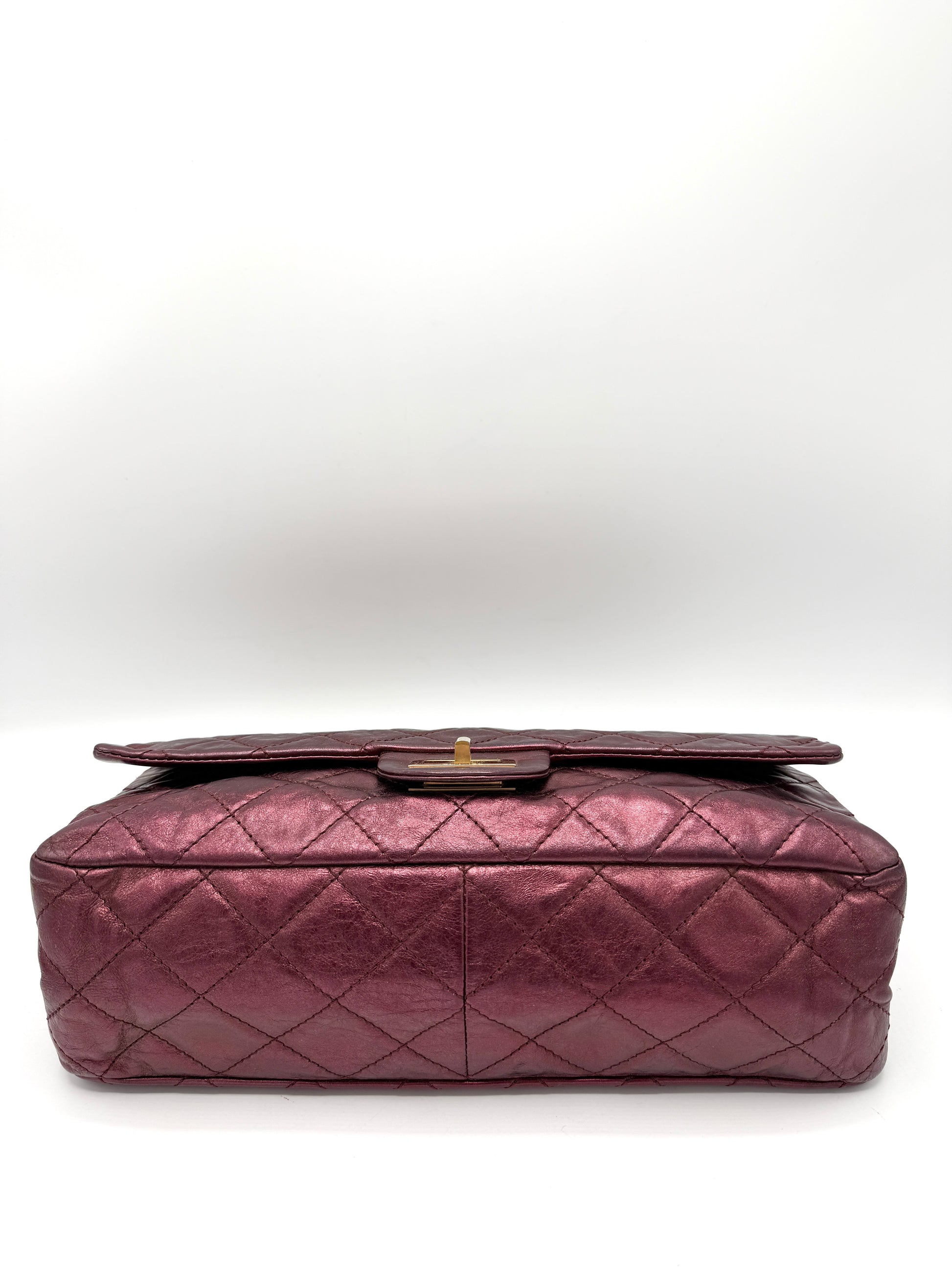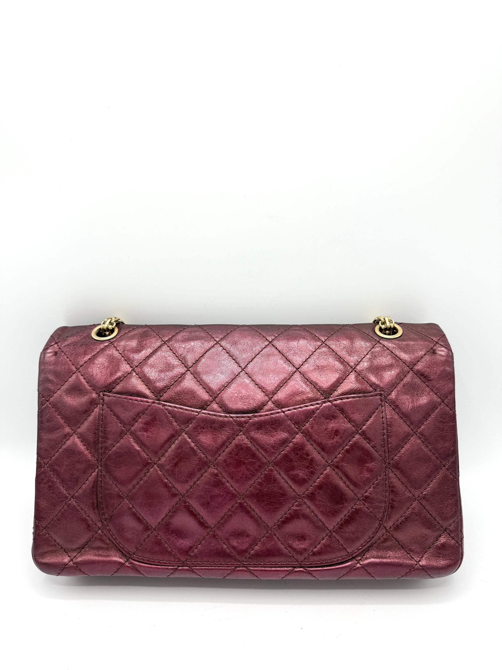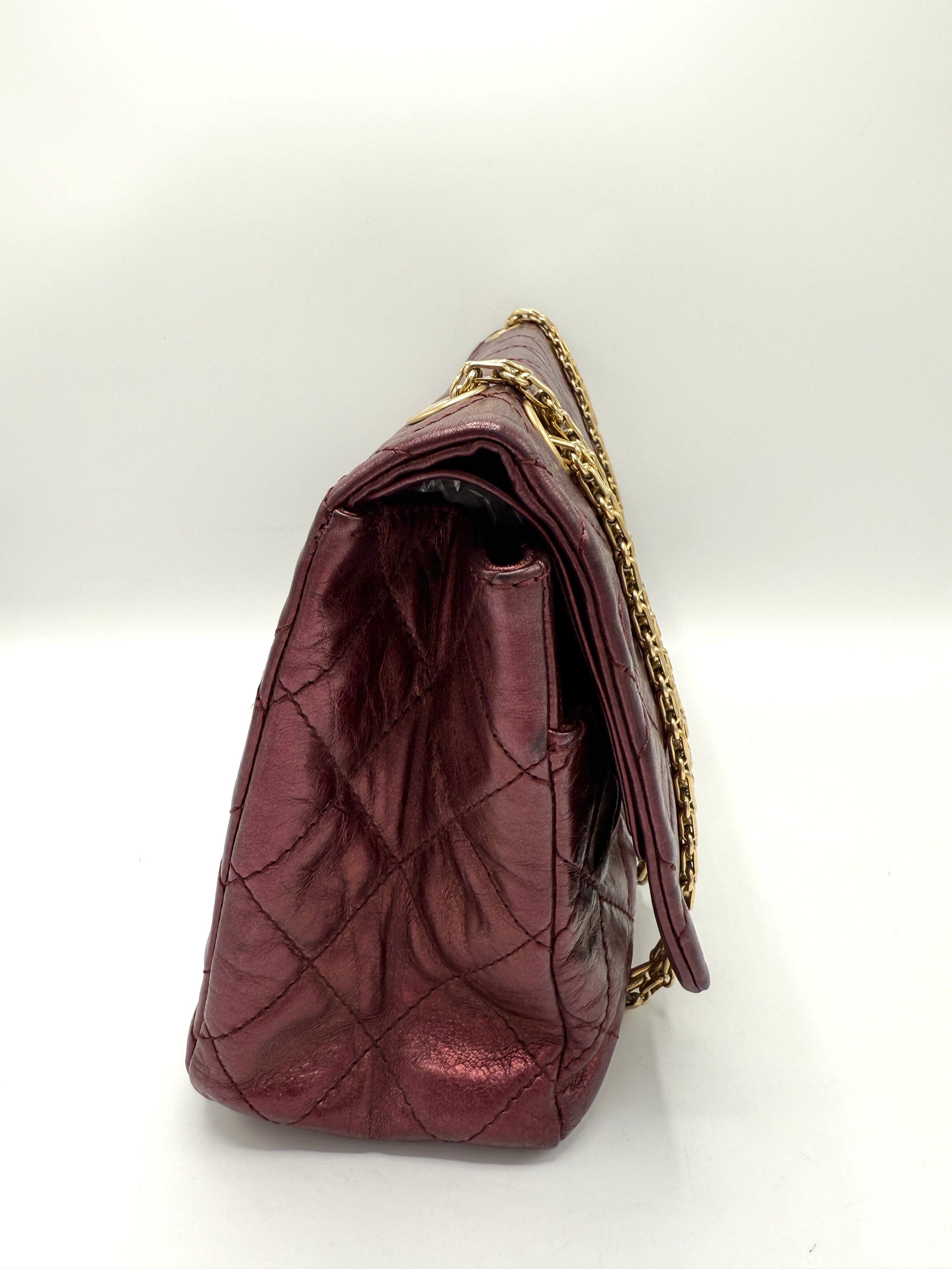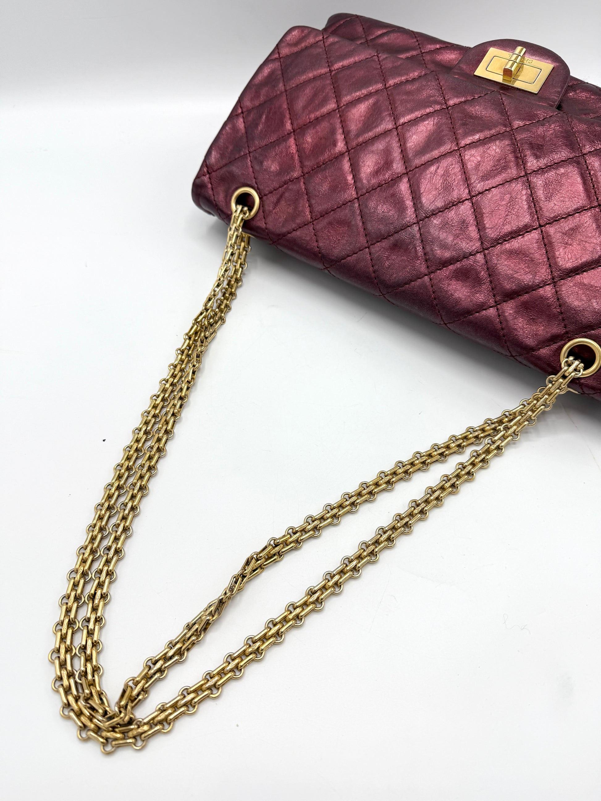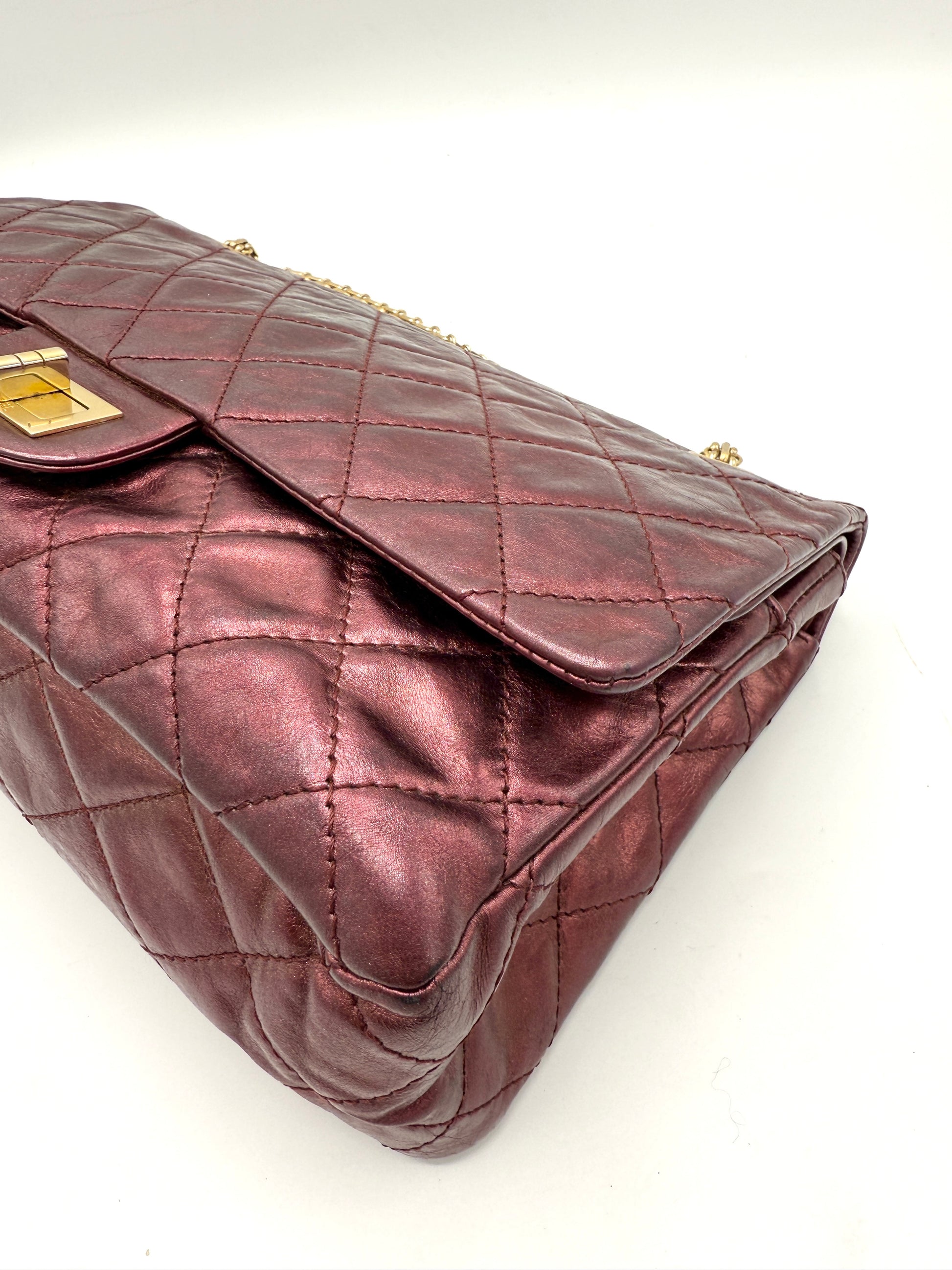 100% Authentic Chanel Metallic Red Distressed Leather GHW Reissue Double Flap