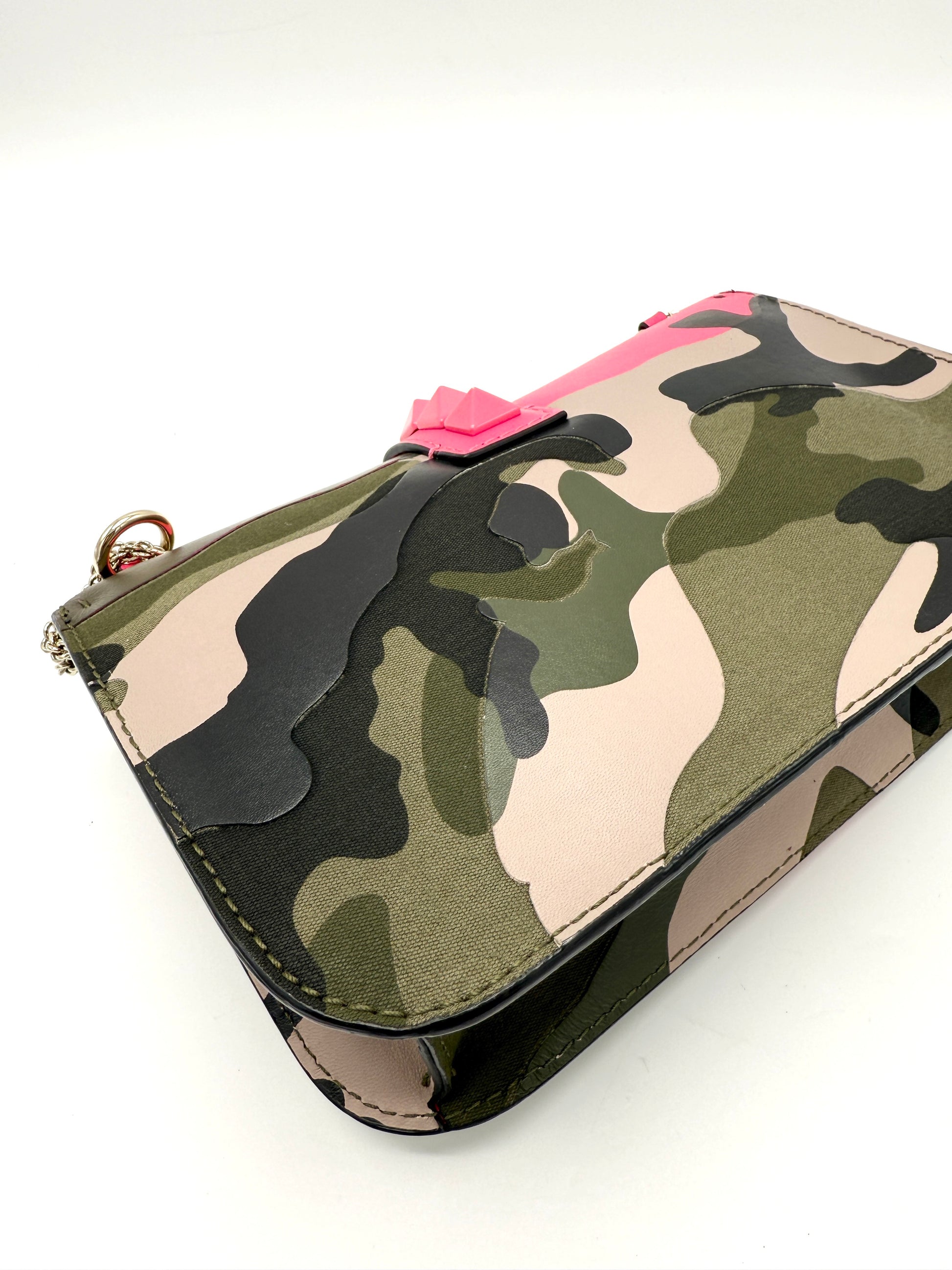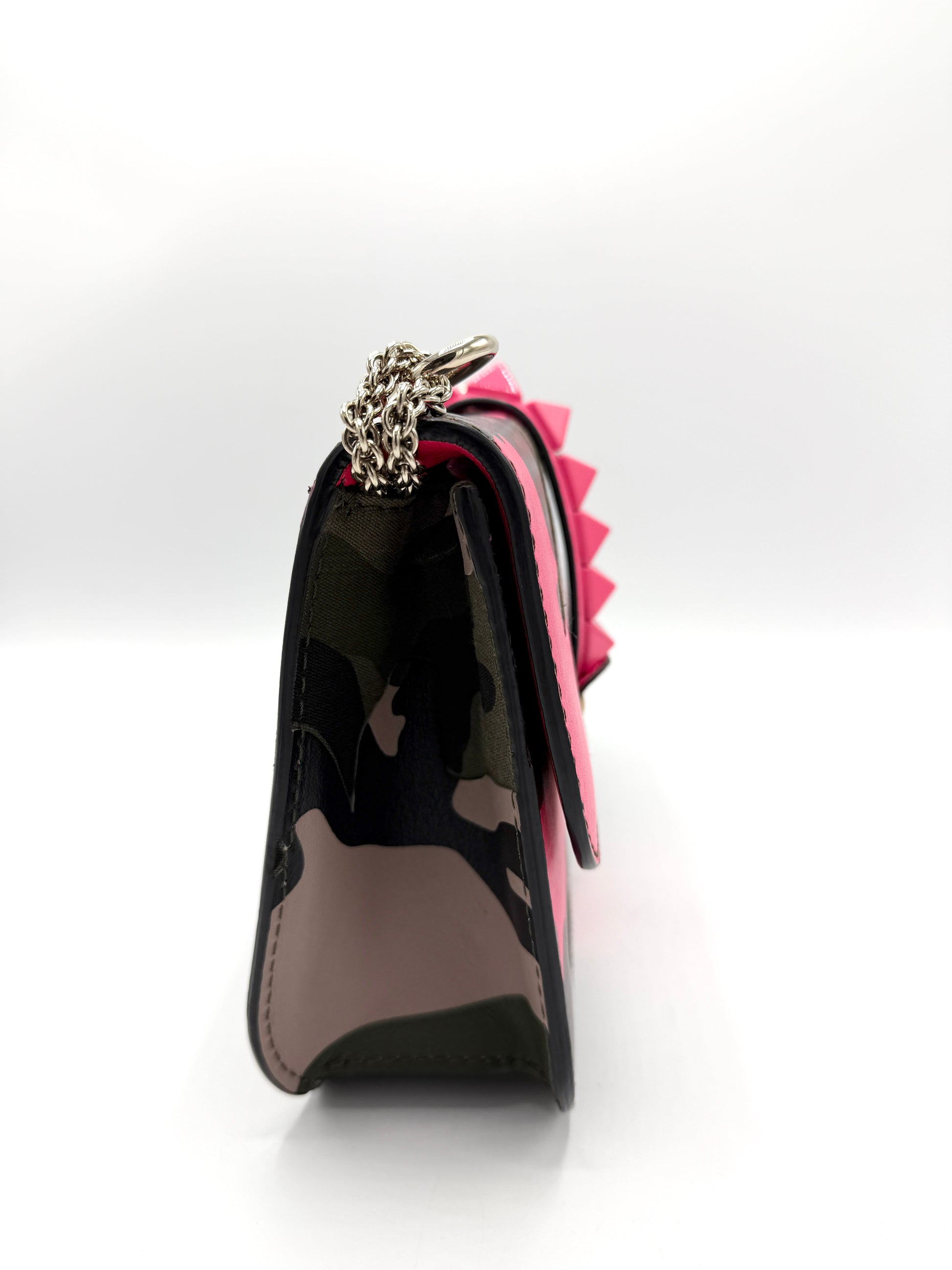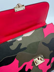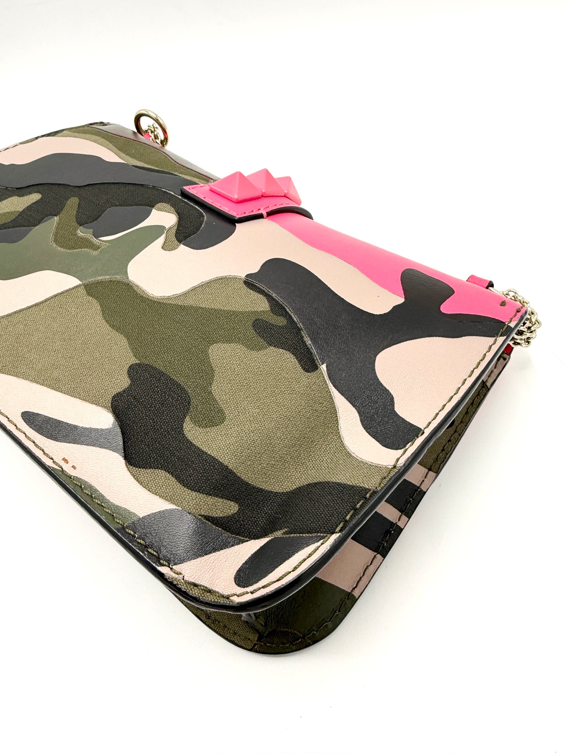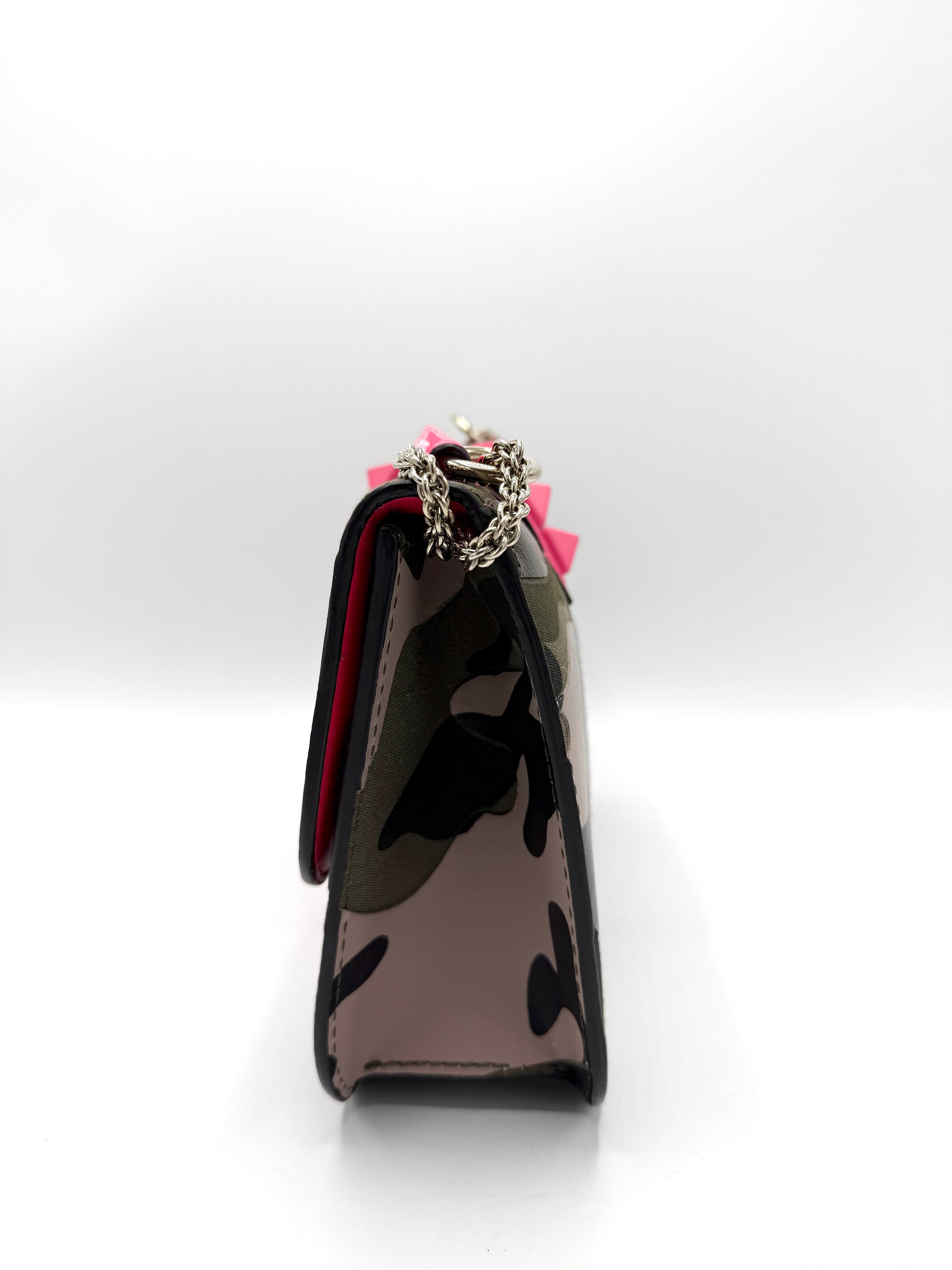100% Authentic Valentino Pink/Green Camouflage Glam Chain Flap Crossbody