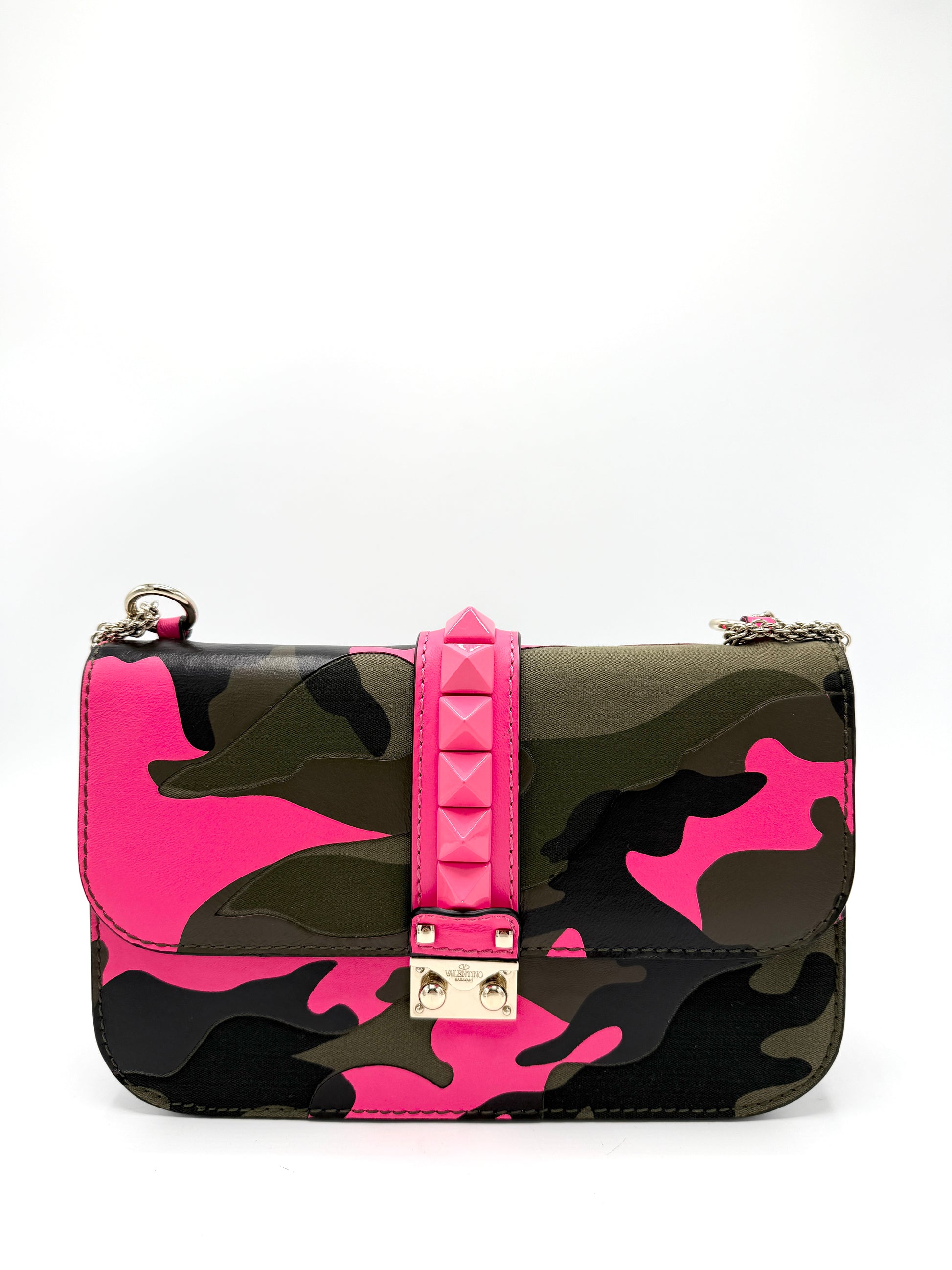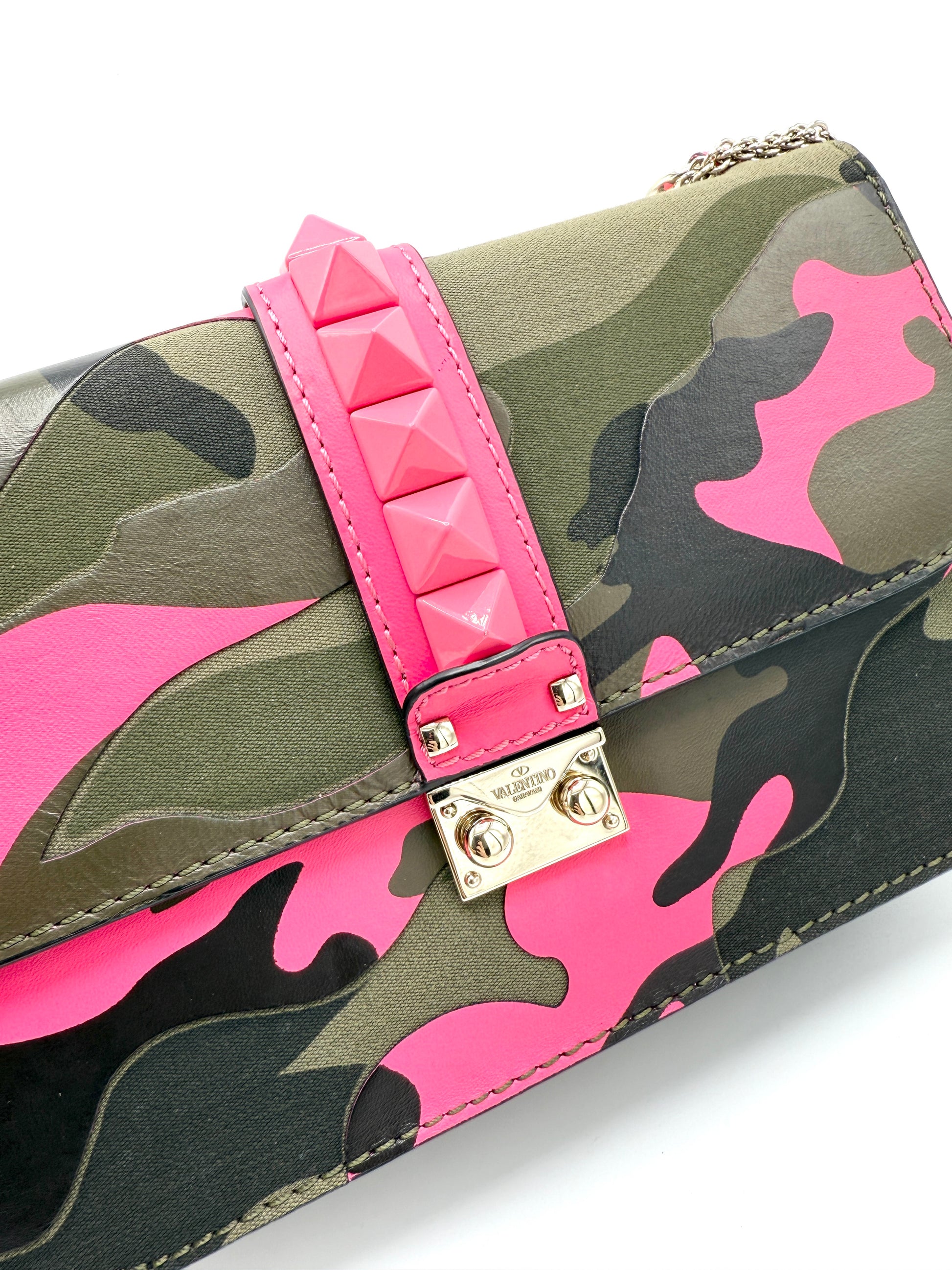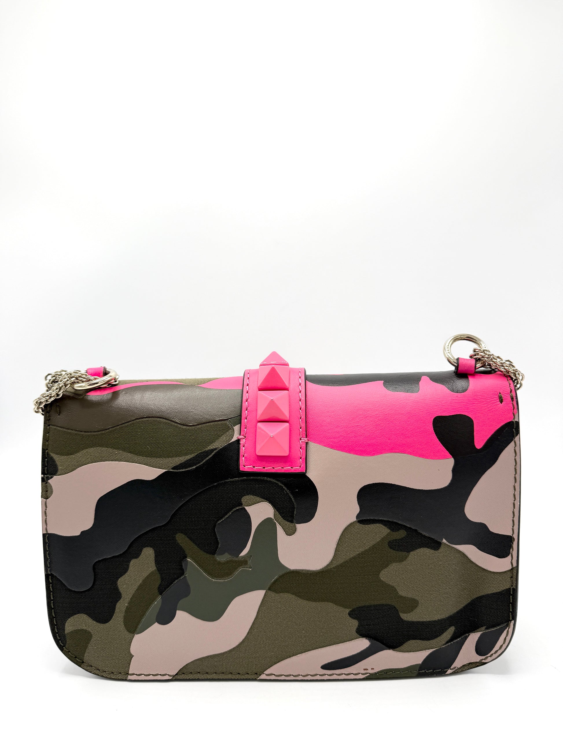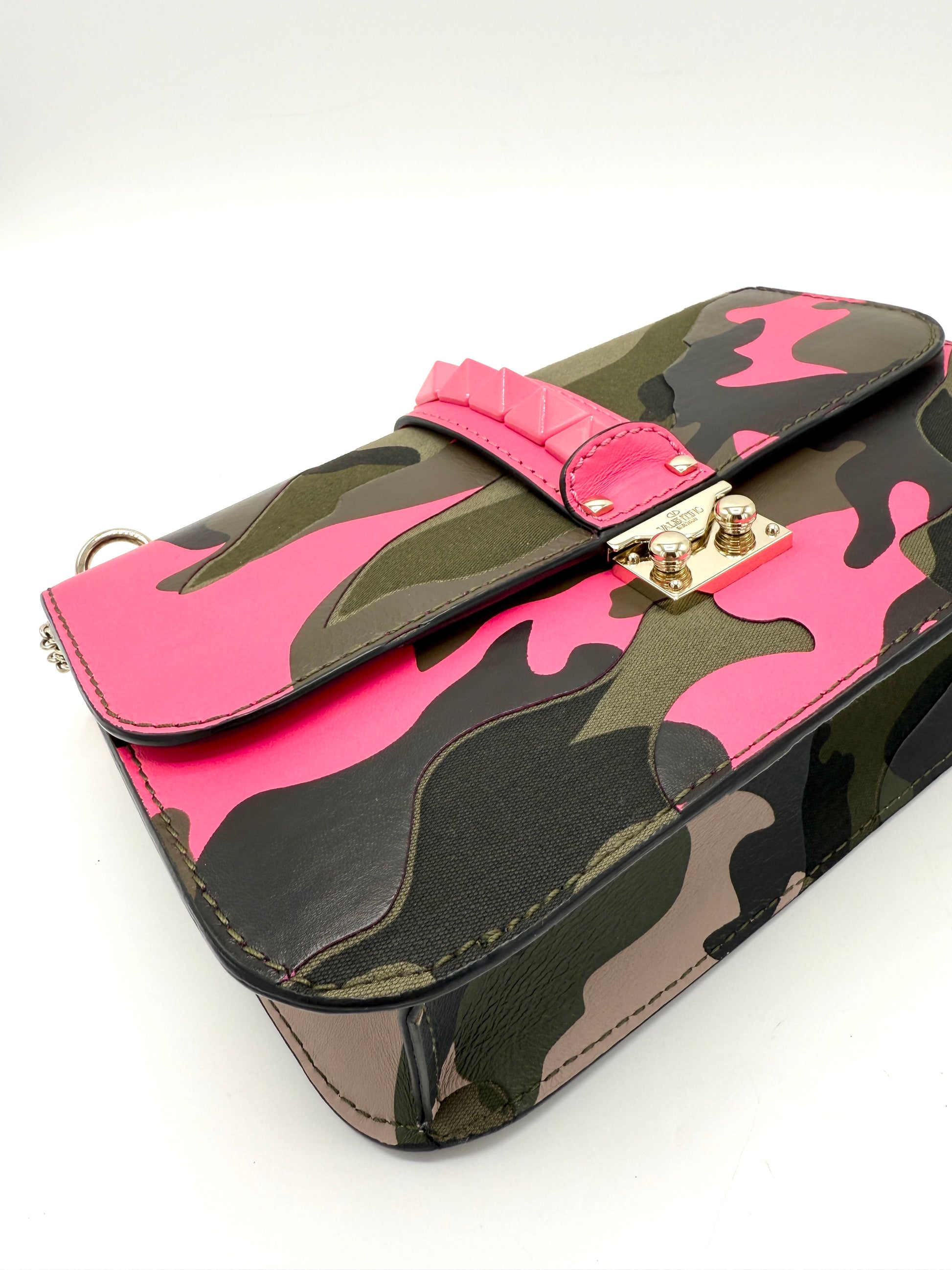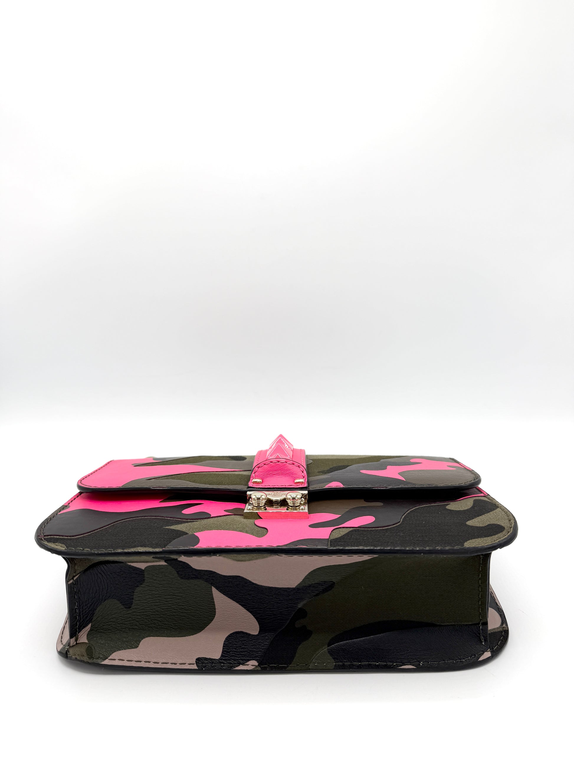 100% Authentic Valentino Pink/Green Camouflage Glam Chain Flap Crossbody
