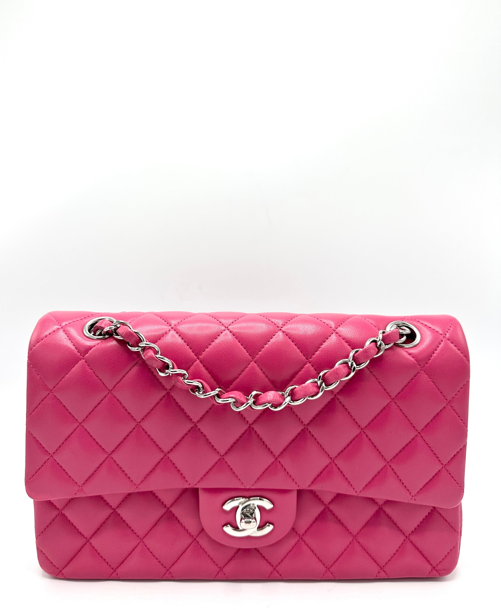 100% Authentic Chanel Pink Lambskin SHW Medium Double Flap