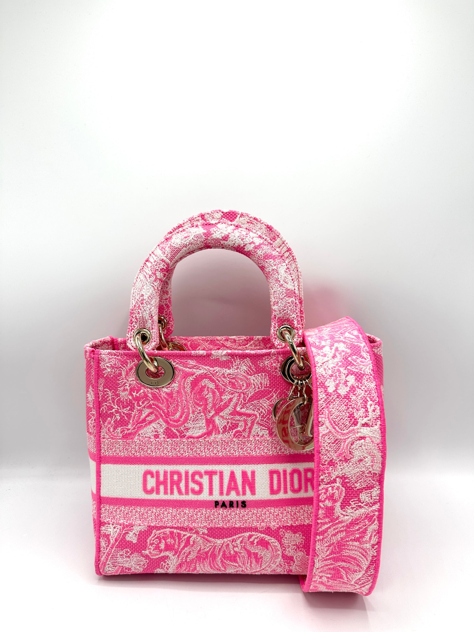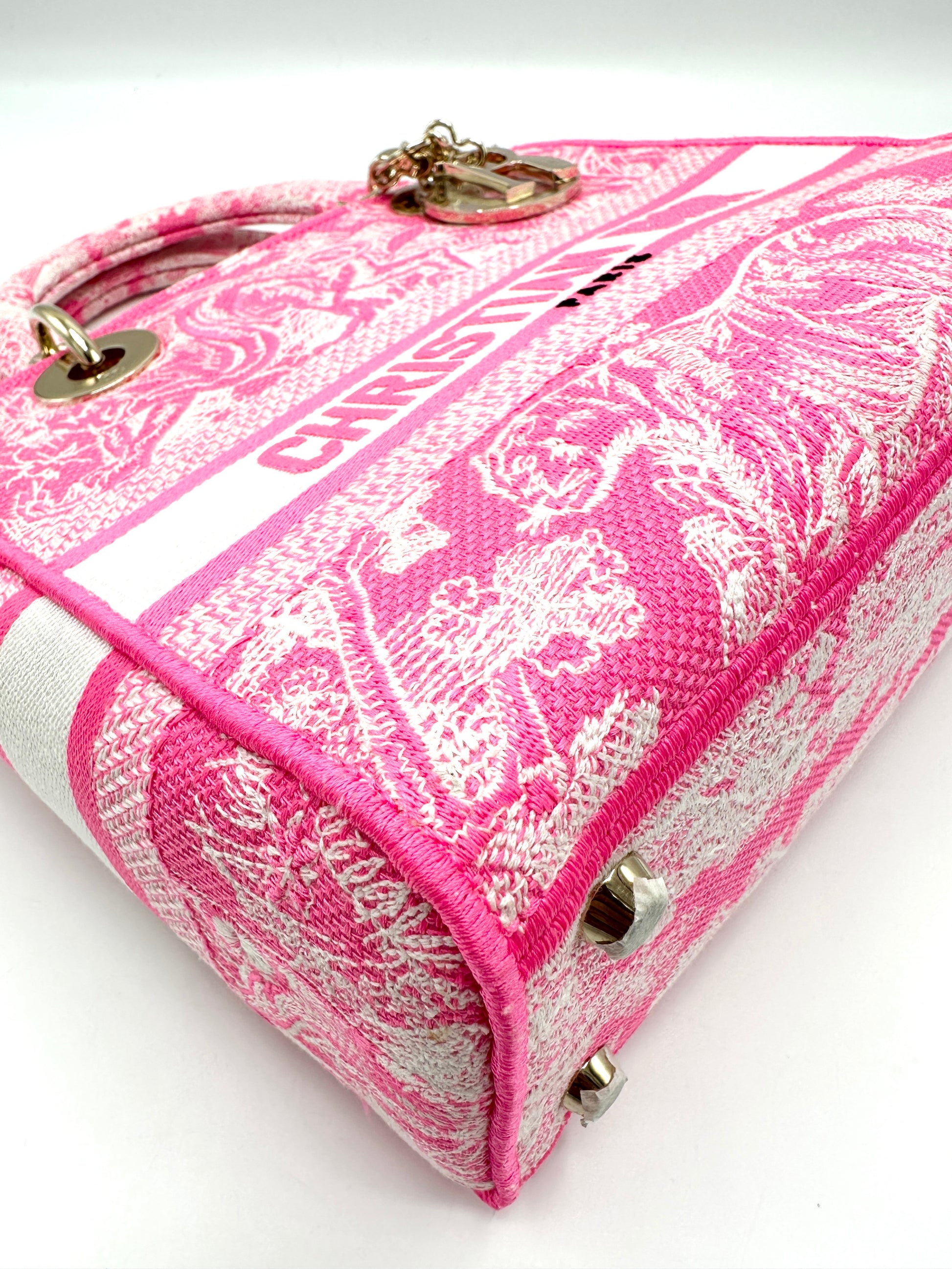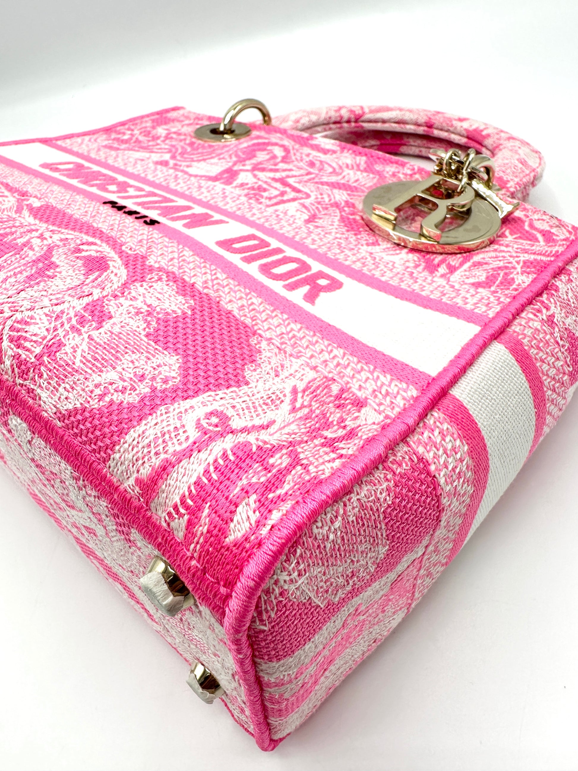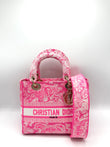 100% Authentic Dior Pink Toile De Jouy GHW Lady D-Lite Tote