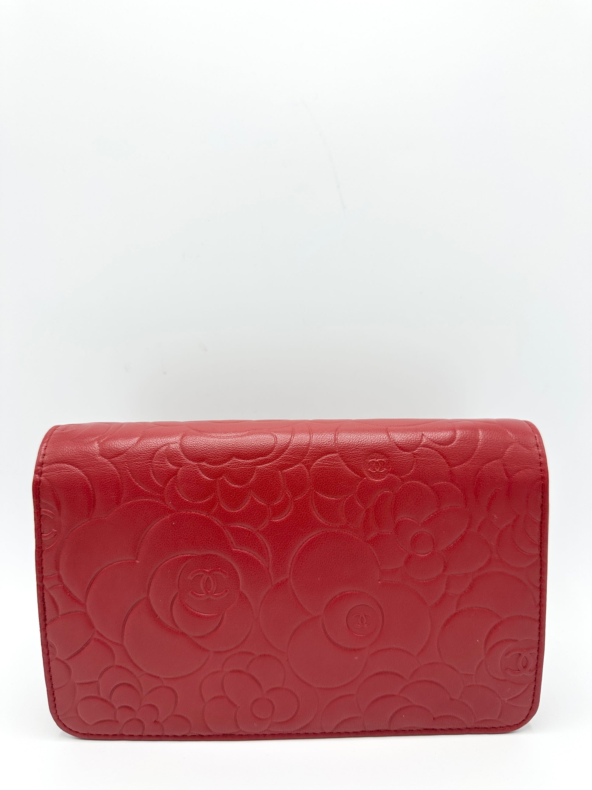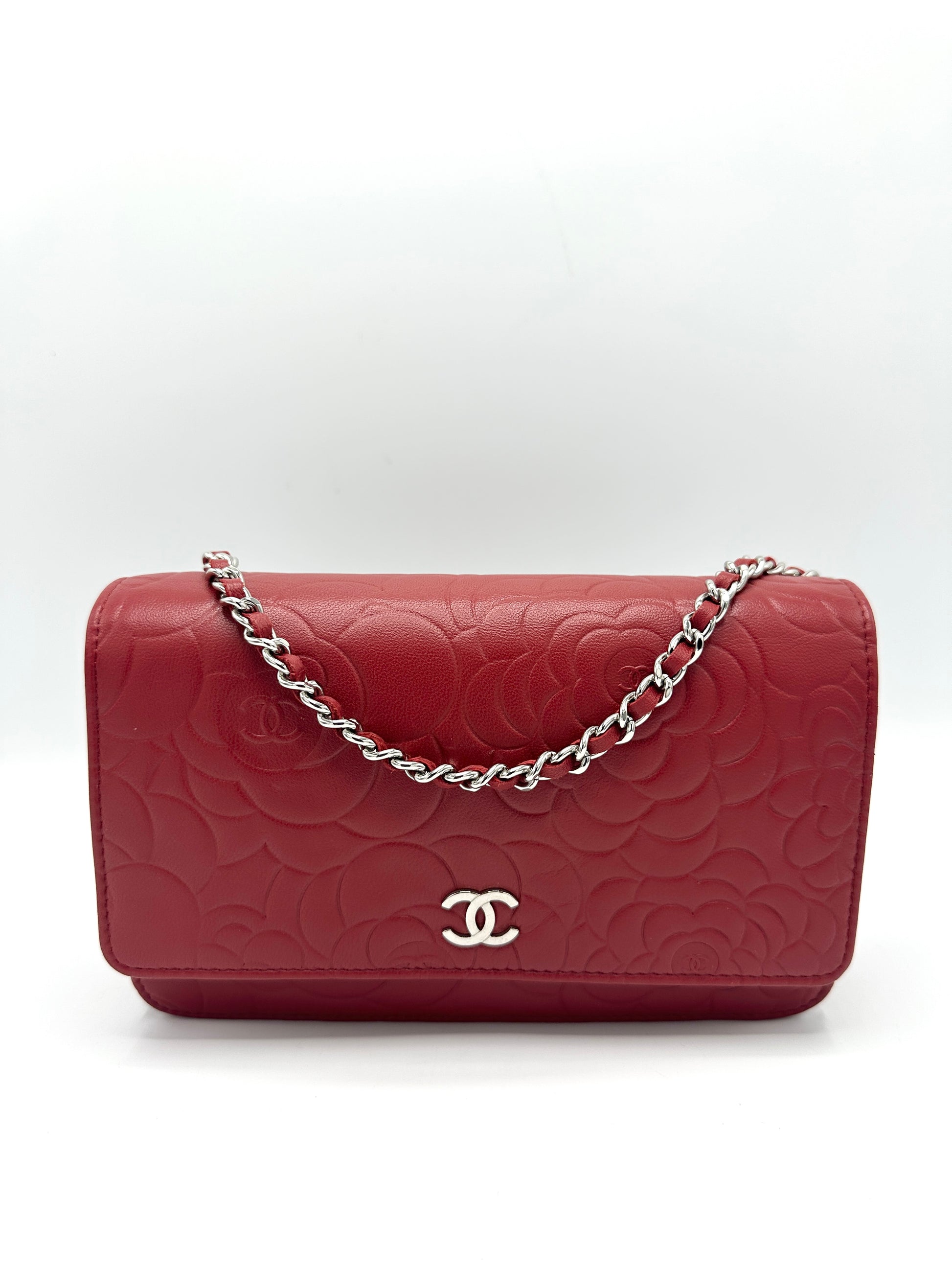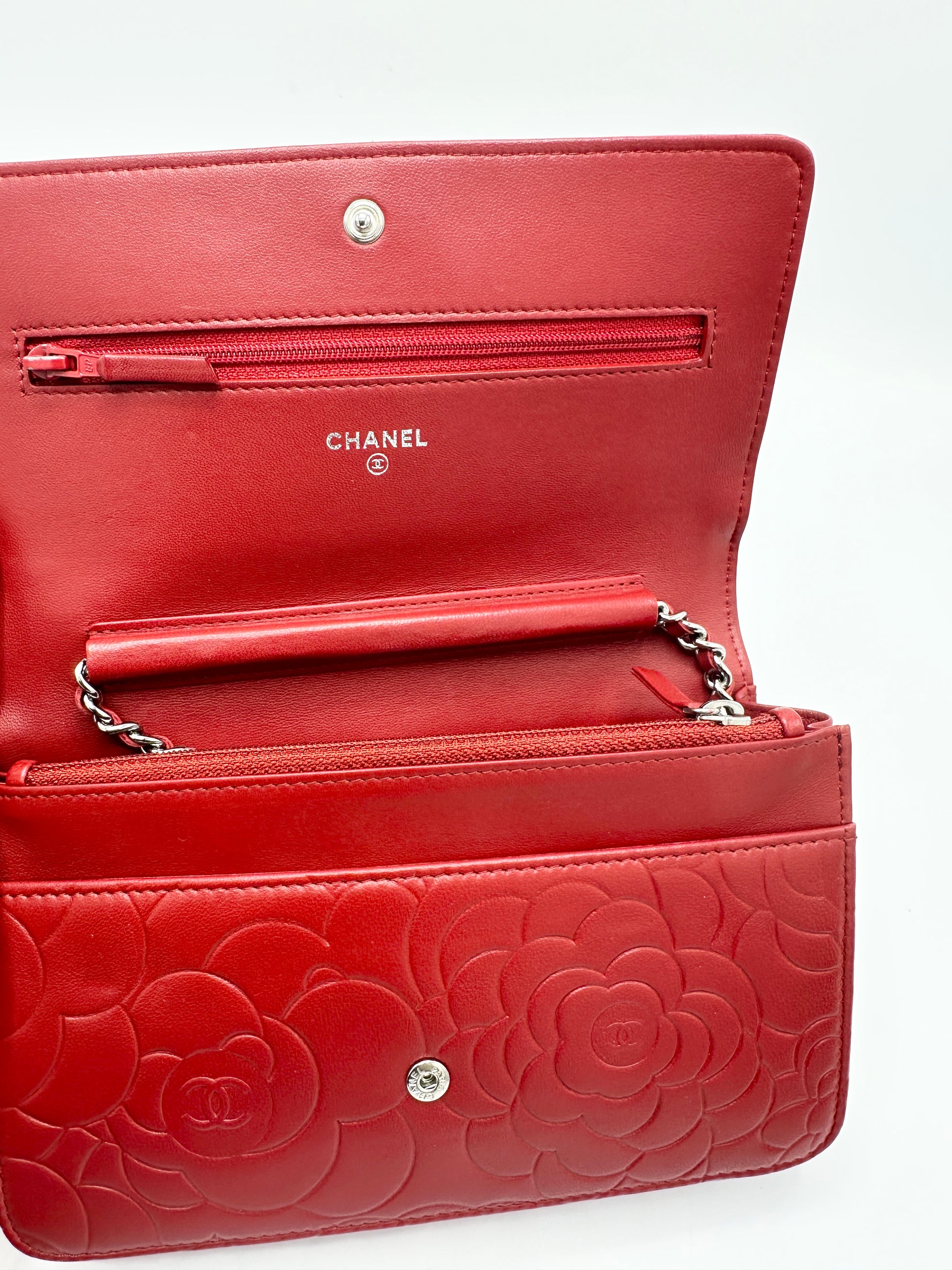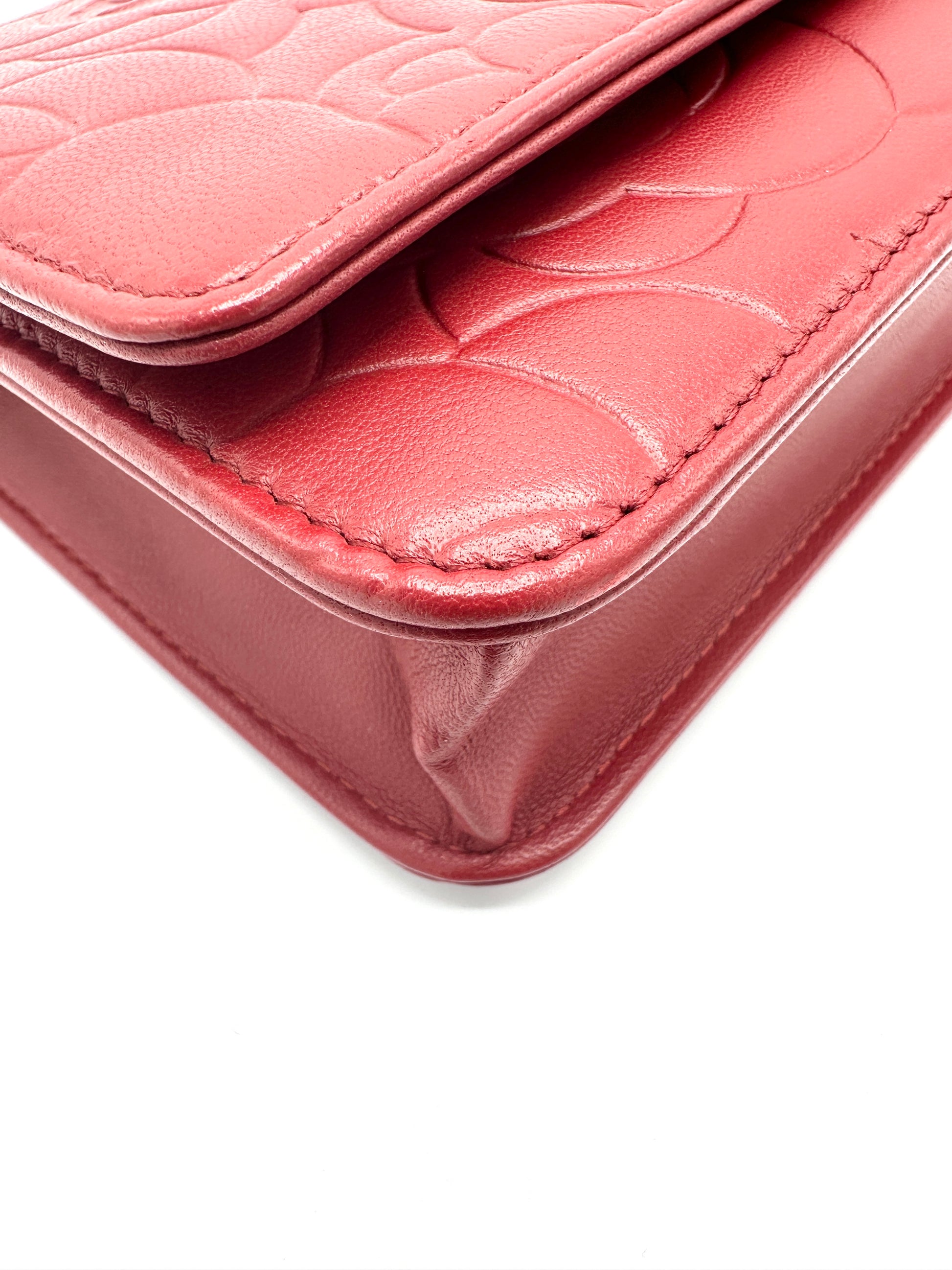 100% Authentic Chanel Red Camelia SHW Wallet on Chain