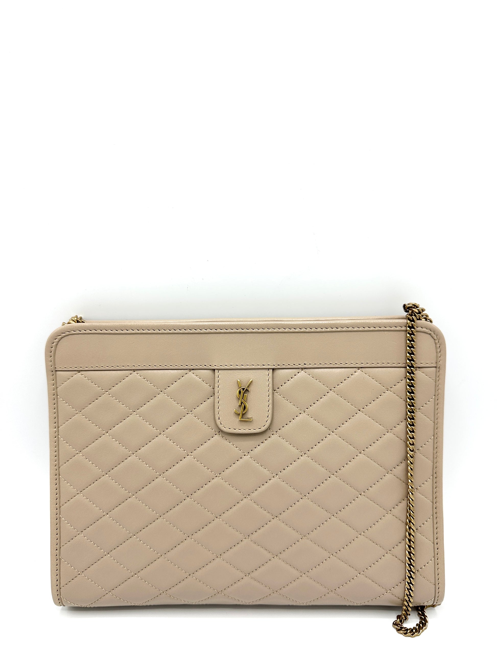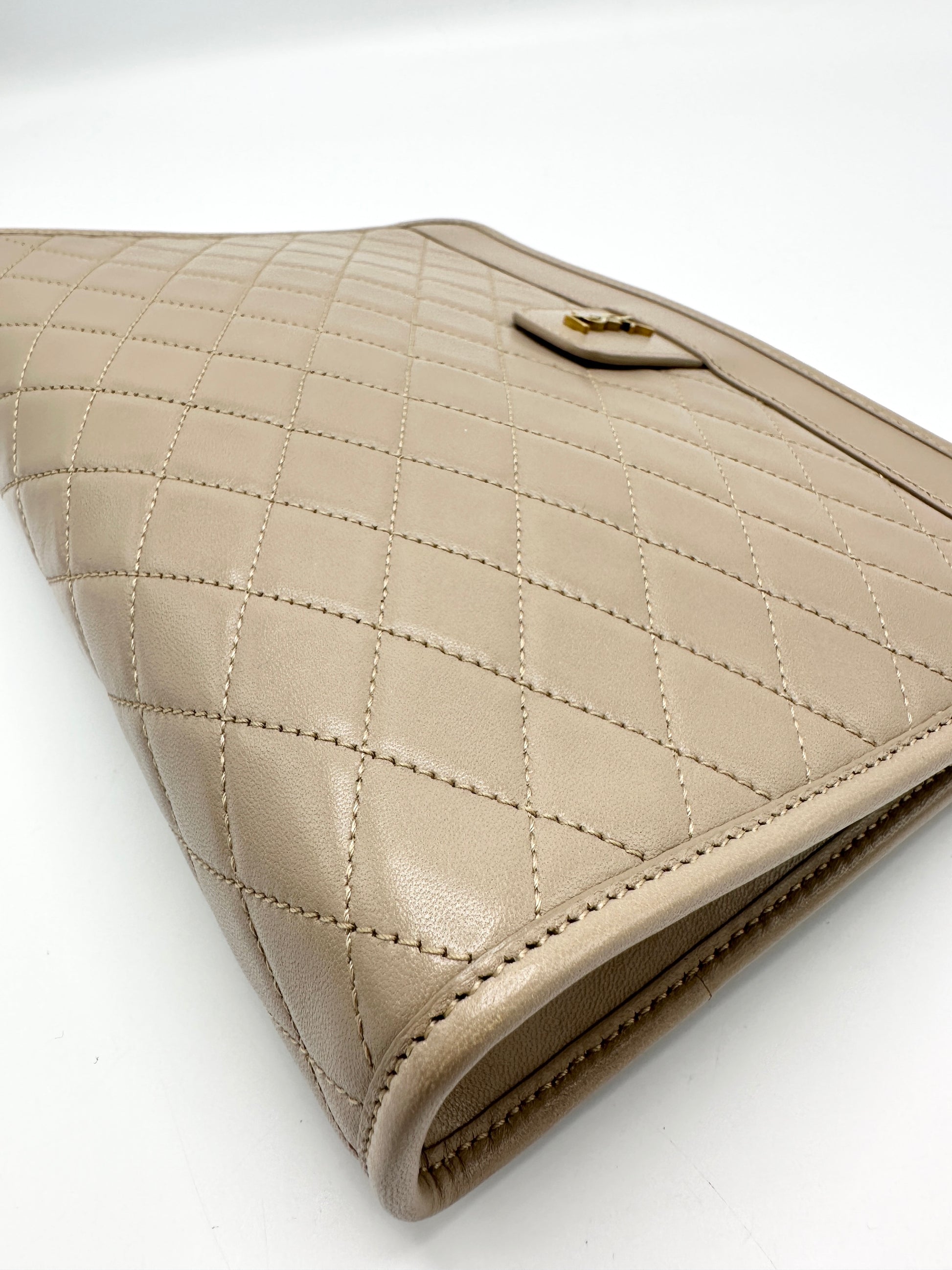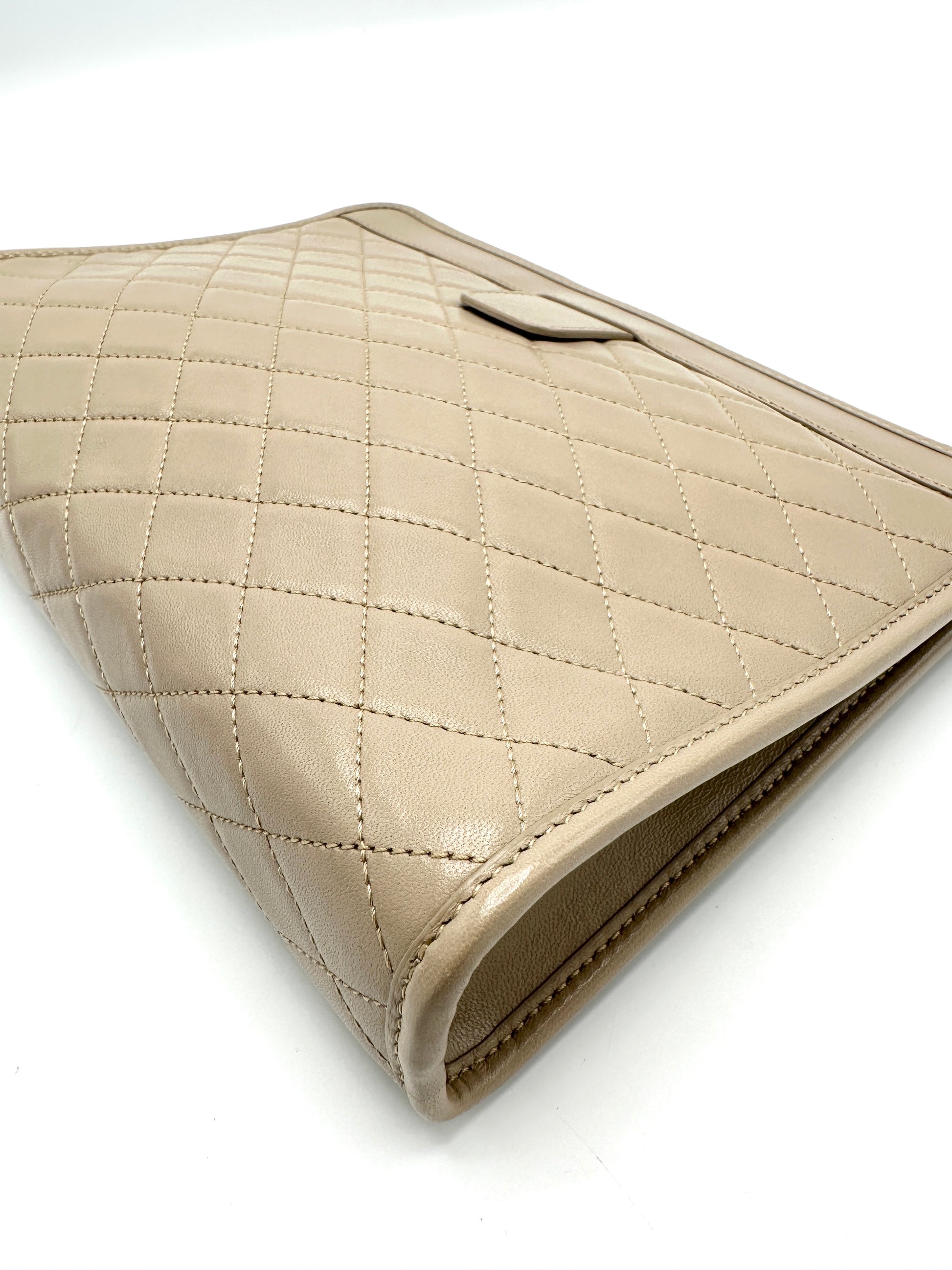 100% Authentic Saint Laurent Taupe Beige Quilted GHW Chain Clutch