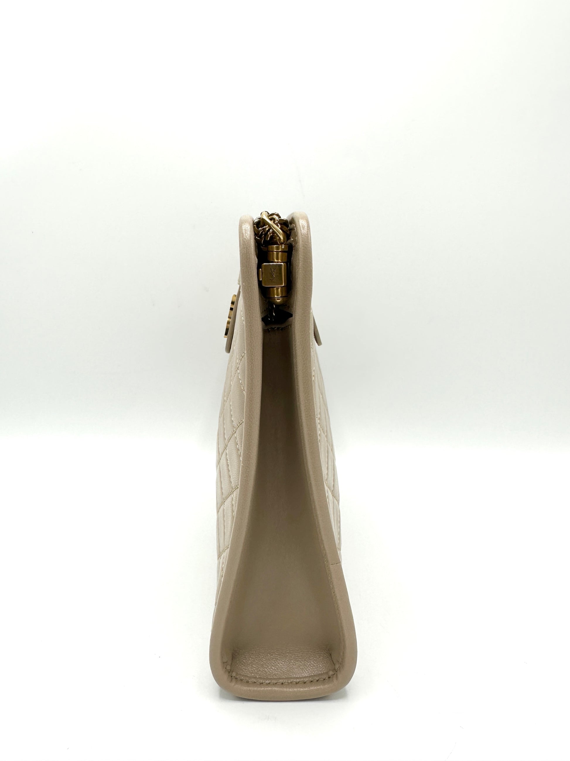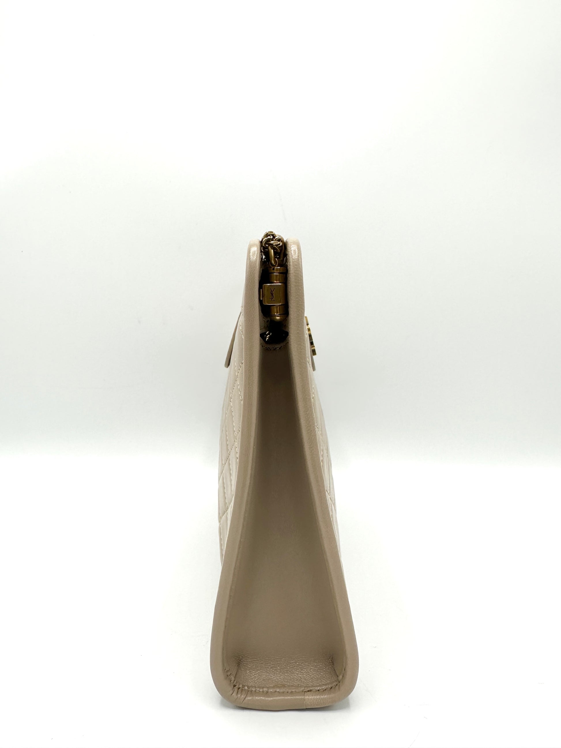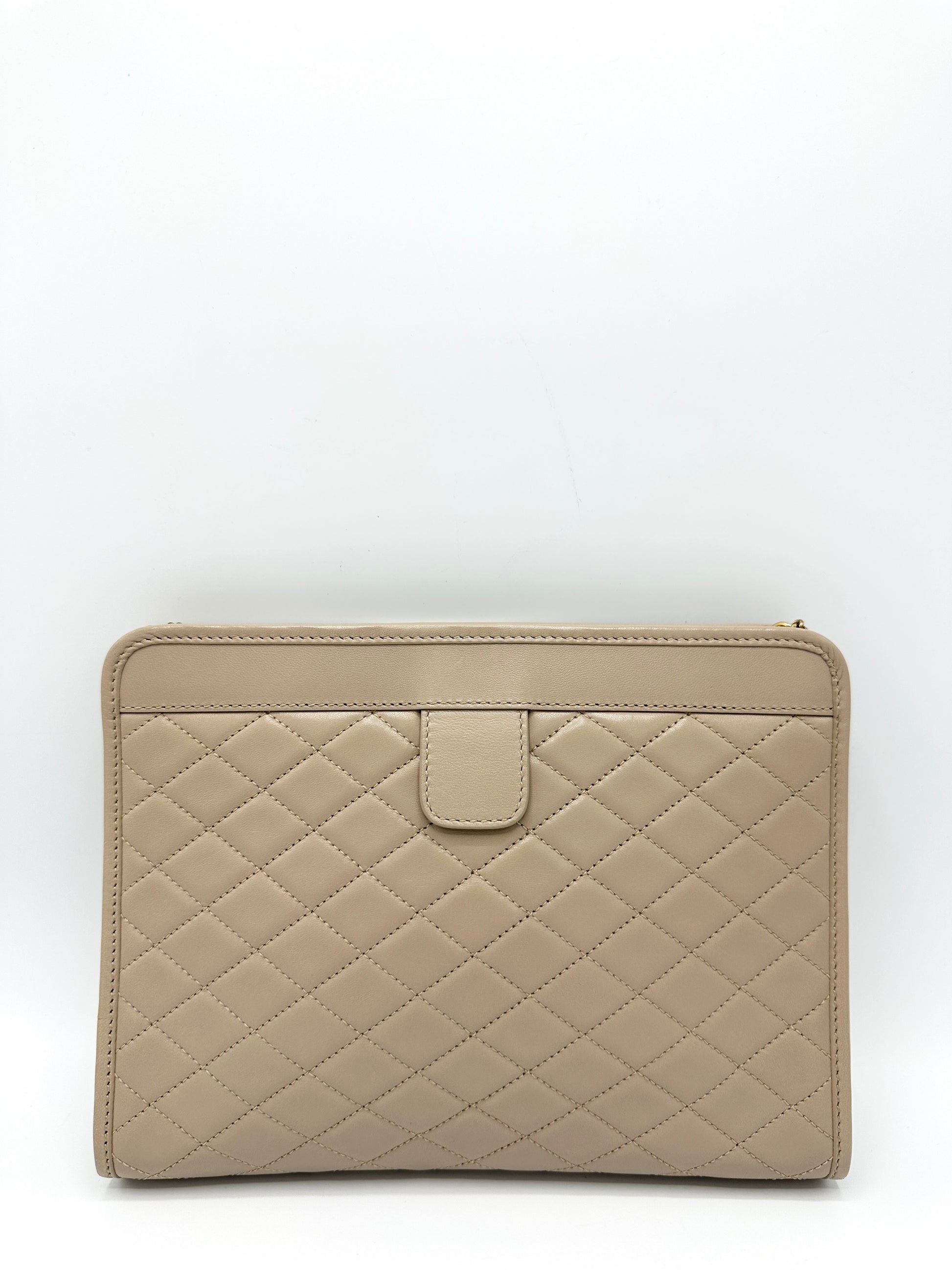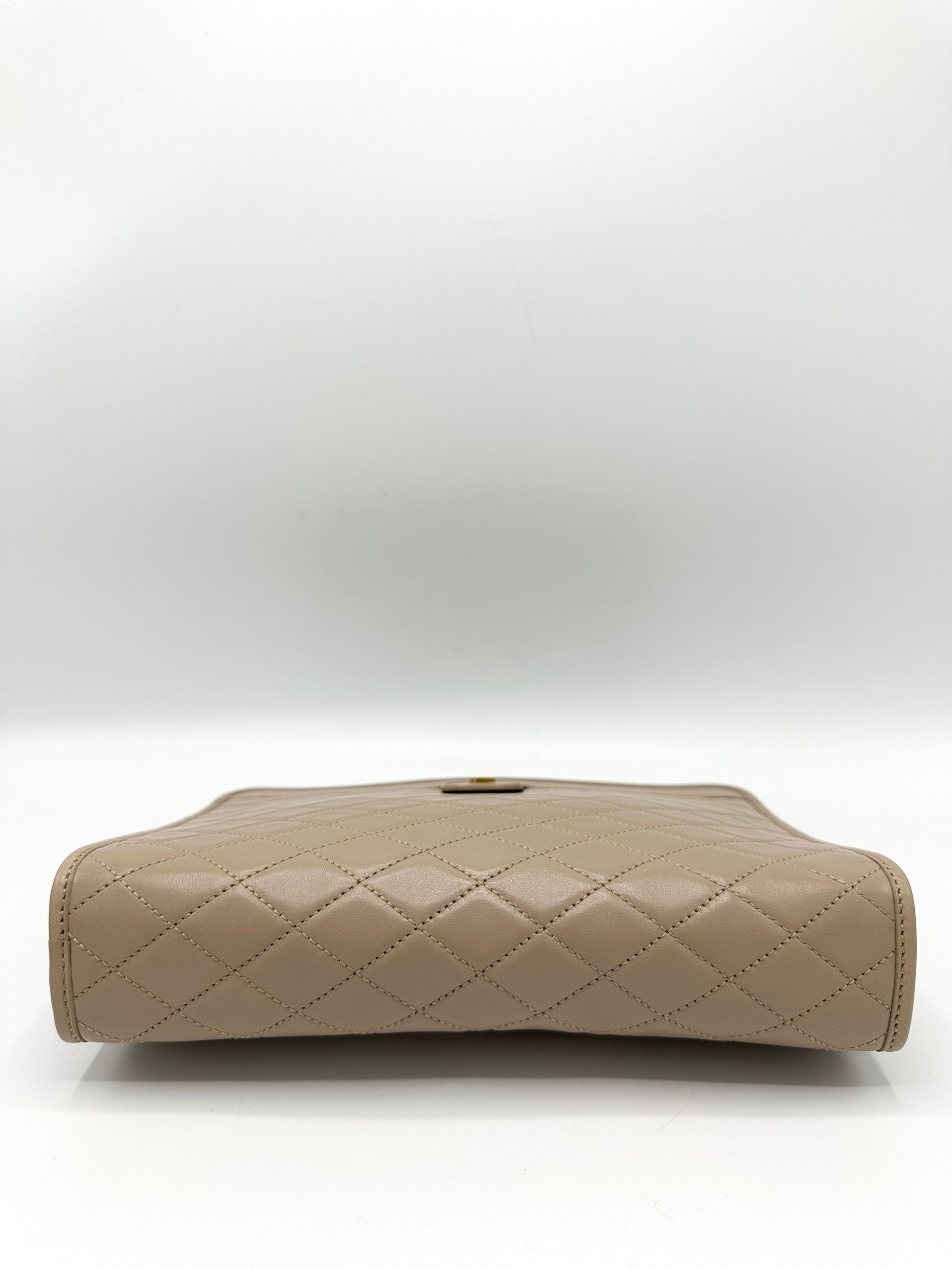 100% Authentic Saint Laurent Taupe Beige Quilted GHW Chain Clutch